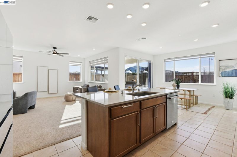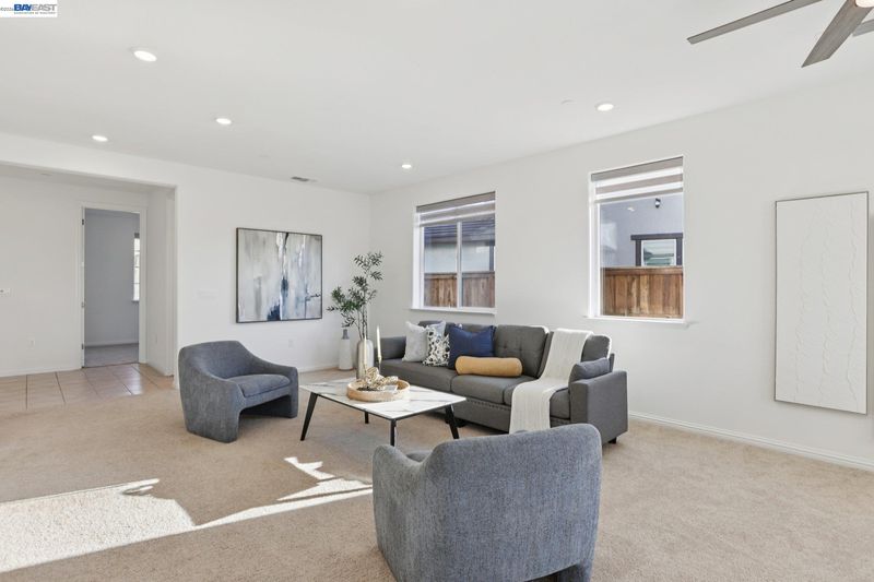Welcome to 16172 Abernathy Ct, a highly upgraded north-facing home in the desirable River Islands community of Lathrop, located on a quiet cul-de-sac with no rear neighbors. This thoughtfully designed residence features a private multi-gen suite (in-law unit) with its own entrance and kitchenette, equipped with refrigerator, oven, electric stove, and washer/dryer—perfect for multigenerational living, guests, or potential rental income. The main home offers a versatile floor plan with a full bedroom and bathroom with a shower on the main level. The kitchen features quartz countertops, a stylish backsplash, and a modern hood, with matching quartz finishes in the bathrooms. Interior upgrades include motorized zebra blinds, sliding screens for the backyard door, and a whole-house water softener with a reverse osmosis drinking water system. Appliances, including washer, dryer, and refrigerator, are included. Enjoy a fully completed front and backyard, incl gazebo and retaining wall, creating a private outdoor retreat. The home also includes solar power for energy efficiency and long-term savings. Located in the master-planned River Islands community near lakes, parks, trails, schools, and commuter routes. Homes with private multi-gen suites in River Islands rarely become available.