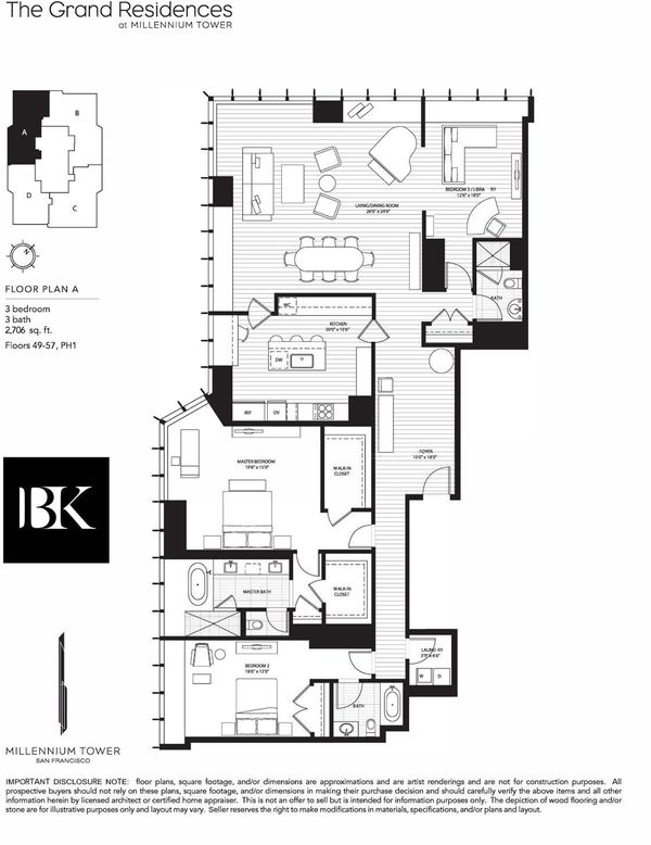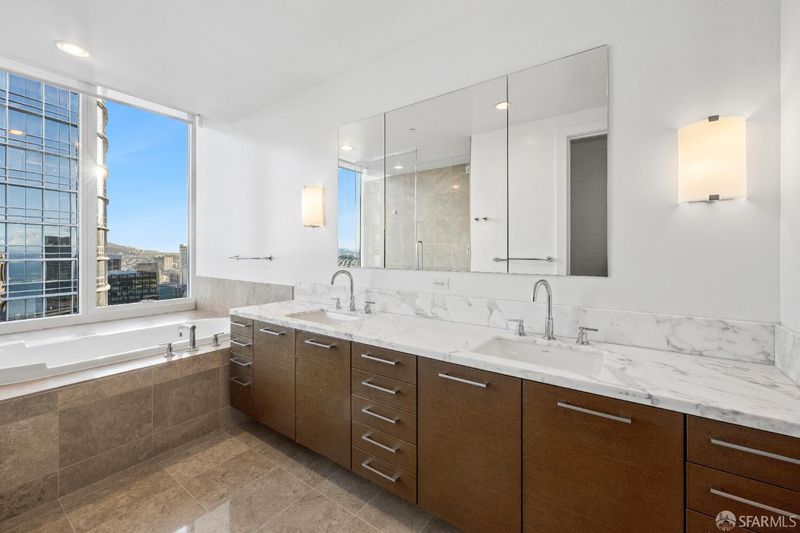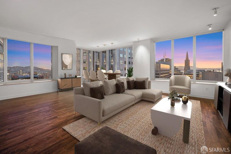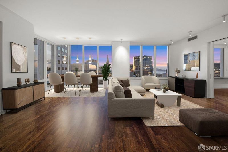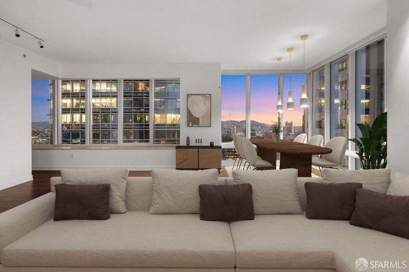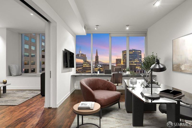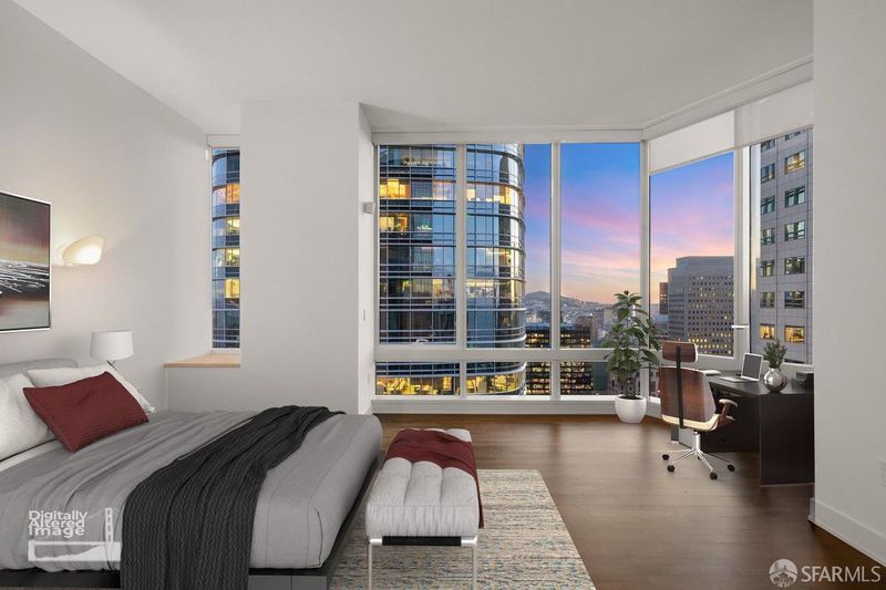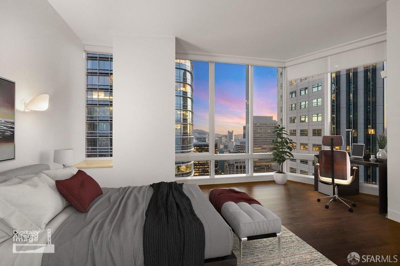 Perched on the 50th floor, this spectacular residence showcases ultra-contemporary design with two spacious bedrooms plus a library, enhanced by a custom pocket door for seamless conversion to a three-bedroom, three-bath home. Soaring ceilings and iconic San Francisco views elevate the living experience, offering a serene retreat high above the energy of the Financial District. Floor-to-ceiling windows frame breathtaking vistas spanning the San Francisco Bay to the Pacific Ocean. Spanning over 2,700 square feet, thoughtful upgrades include hardwood flooring throughout, custom contemporary lighting, and bespoke closet systems and organizers. The residence features a generously sized laundry room with a full-size, side-by-side washer and dryer. Located in the coveted four-residences-per-floor section of Millennium Tower, this home offers enhanced privacy along with extra-high ceilings, oversized bedrooms, expansive closets, extra-wide entry doors, and a large enclosed caterer's gourmet kitchen. Designed for the most discerning urban luxury buyer, this exceptional residence delivers an unparalleled lifestyle in the sky. This exceptional residence presents a rare opportunity for the most discerning buyer seeking elevated city living, refined design, and effortless, turnkey luxury living. Amenities include a 20,000 square foot Club Level featuring: Resident dining room & bar, movie theater, wine tasting room with a wine storage locker included. 5,000 sq.ft. fitness center. A 75-foot heated, indoor, saline lap pool with hot tub, steam room, private locker rooms and a children's playroom with access to childcare. Enjoy all access to MT's famous calendar of events & 5 star luxury services. Some images have been virtually staged.