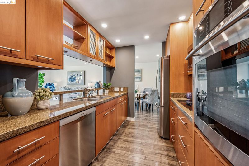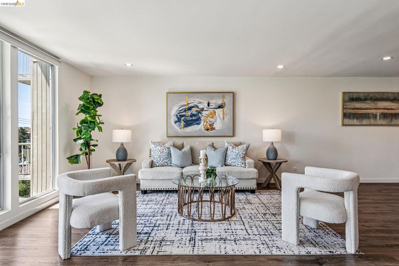 Close to everything and above it all, this bright, sunny top-floor condo is your tranquil retreat in the heart of one of Oakland's most vibrant and exciting neighborhoods. Move right in and enjoy contemporary finishes like granite countertops, wood cabinets, sleek modern flooring with radiant heat, and thoughtful upgrades like the motorized awning, which can either give you shade on your balcony or let the sun shine in. The spacious primary has a full ensuite and two big closets. The second bedroom has custom doors and could serve as an elegant home office. There is a private storage room right across the hall, indoor gated parking, sauna rooms, and a pool. Just steps from Lake Merritt, the Farmer's Market, and all the shopping and restaurants of Grand and Lakeshore. 96 Walkscore! Don’t miss this urban gem.