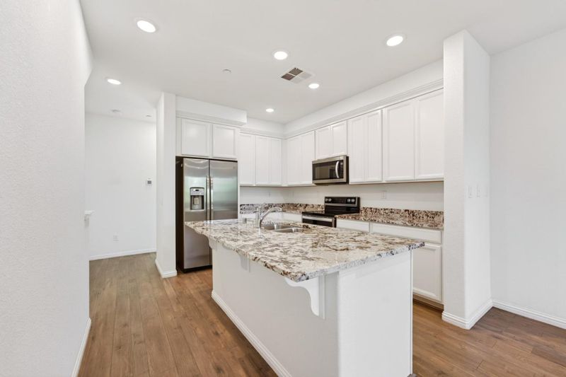 Built in 2019 as part of the communitys earlier release, this home offers a thoughtfully designed three-level layout with modern finishes, excellent separation, and flexible living spaces that adapt to todays lifestyle. Multiple suite-style bedroom options, including dual en-suites, provide a versatile setup for guests, work-from-home needs, or everyday comfort. The main living level is bright and open, centered around a spacious kitchen with a large island, stone countertops, stainless steel appliances, and abundant cabinetry, flowing seamlessly into the dining and living areas. A private balcony extends the living space and creates an inviting indoor-outdoor connection. The primary suite offers a walk-in closet, dual-sink vanity, and generous storage. Additional features include an attached 2-car tandem garage with electric vehicle charging, high ceilings, solar, and a hybrid water heater. Located in The Capitol community with access to greenbelts, BBQ areas, clubhouse, and playground, and close to shopping, dining, parks, BART, VTA, and major commute routes.