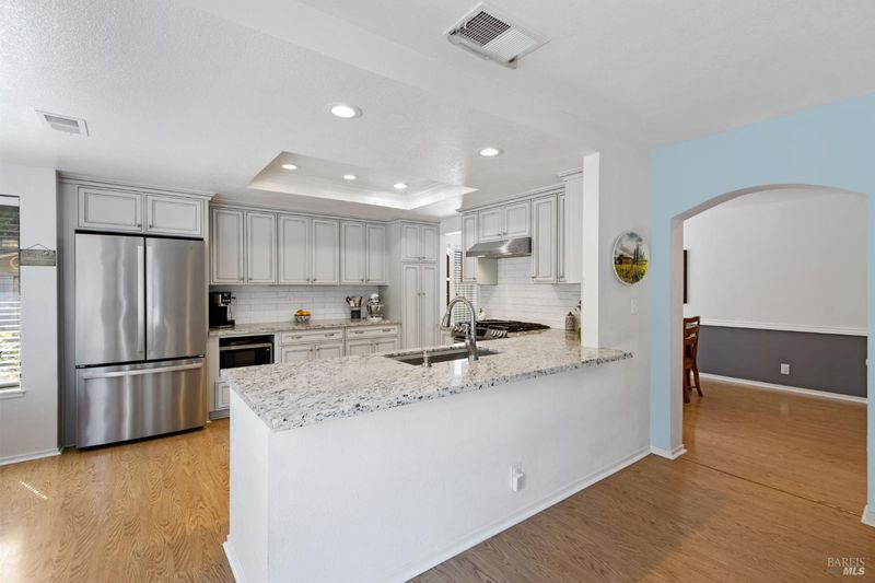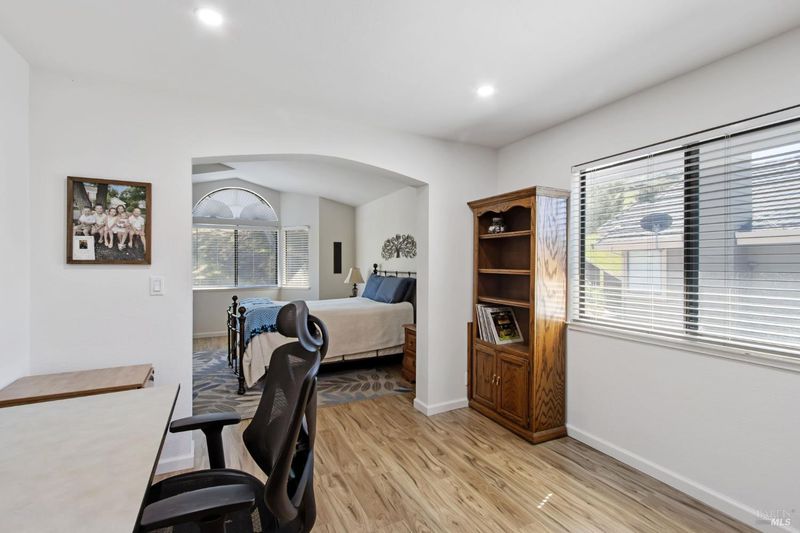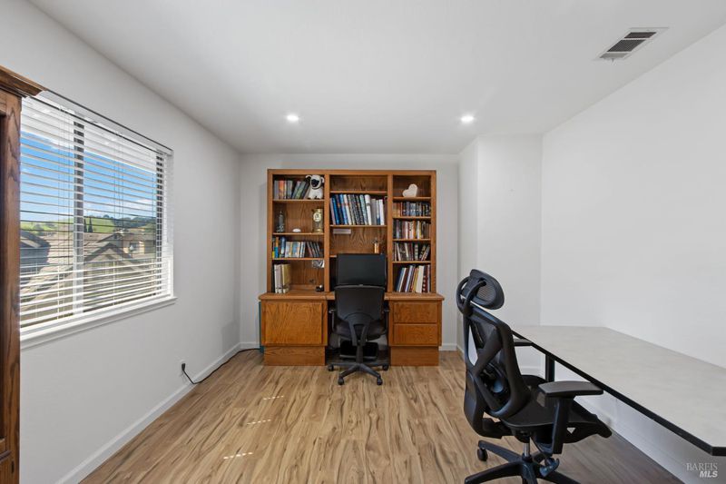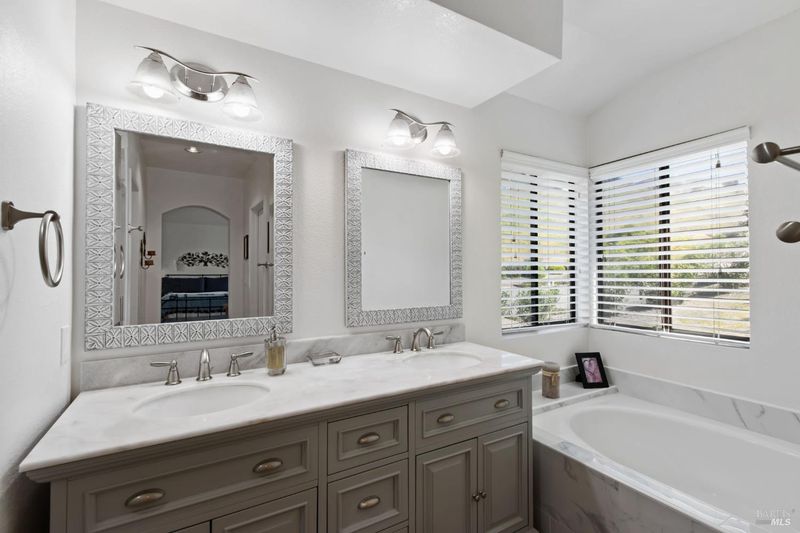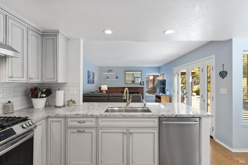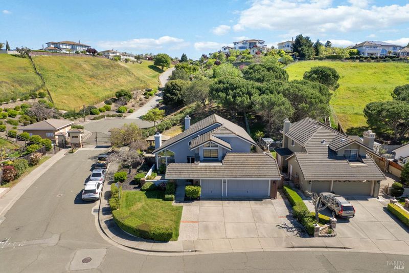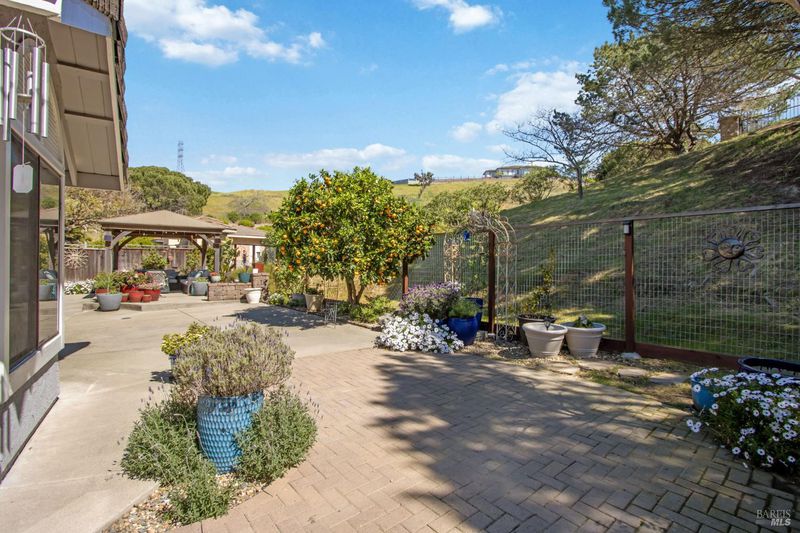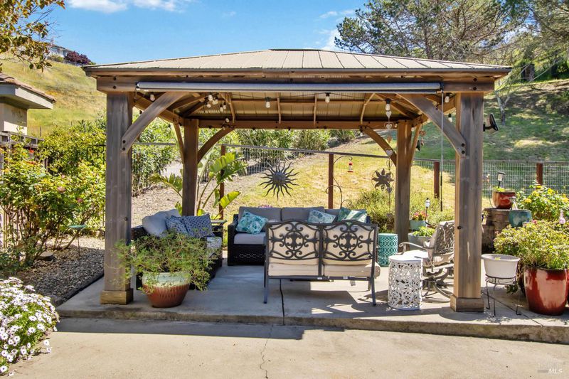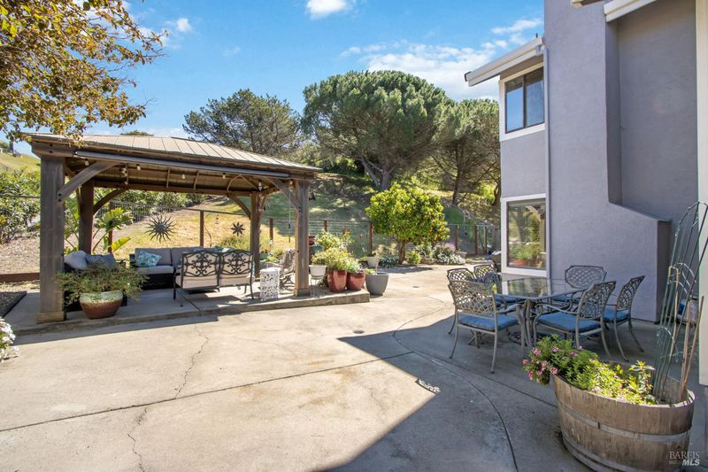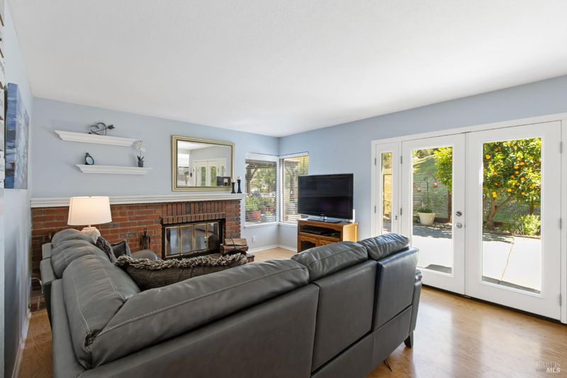 This gorgeous property located in the desirable Marsten Ranch neighborhood. This thoughtfully designed home features 5 bedrooms, 3 bathrooms, and a three-car garage. As you enter, cathedral ceilings and picture windows greet you, providing light-filled living spaces. The home offers two distinct living areas: a cozy main space with a brick fireplace, and an additional room featuring a second fireplace with French doors leading to the backyard. The layout includes a convenient main-level bedroom and full bath, ideal for guests.The updated kitchen showcases beautiful cabinetry and appliances, perfect for entertaining, and all bathrooms have been refreshed with updated fixtures and finishes. The primary suite serves as a true retreat, featuring a spa-like tub and a versatile fifth room suitable for a sitting area or office. Situated on a spacious corner lot with no rear neighbors, the fully landscaped grounds include fruit trees, a charming gazebo, and hillside views. Additional amenities include updated exterior and interior paint, new fencing, and built-in garage cabinets. The property is ideally located near parks and shopping, with convenient access to I-80 and Highway 4.