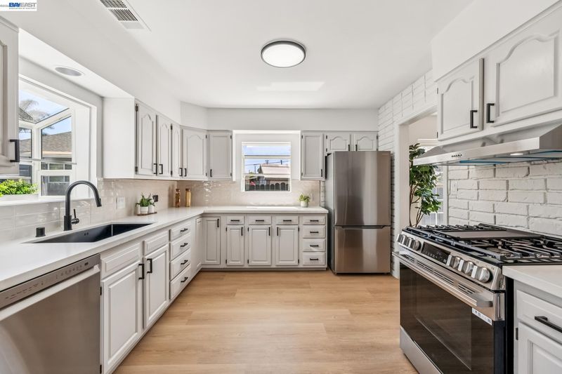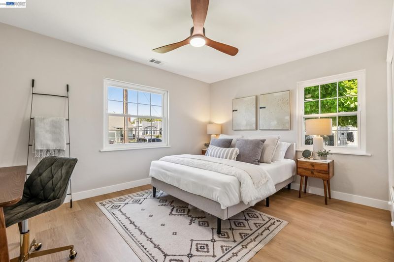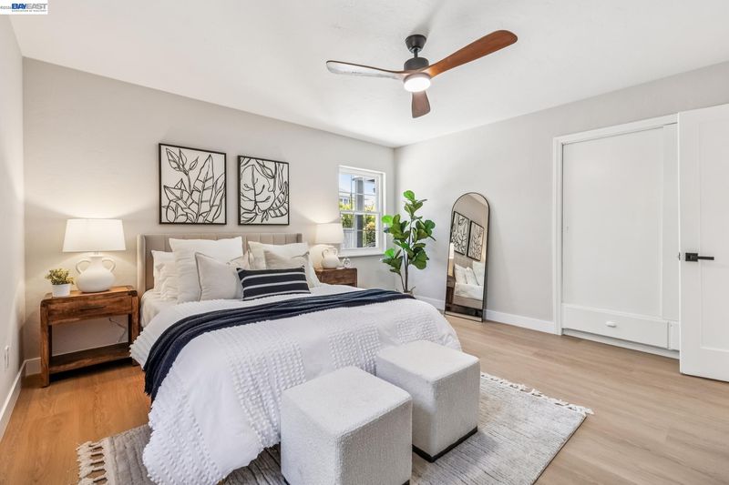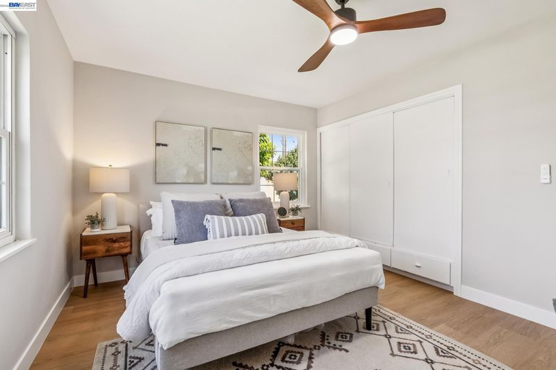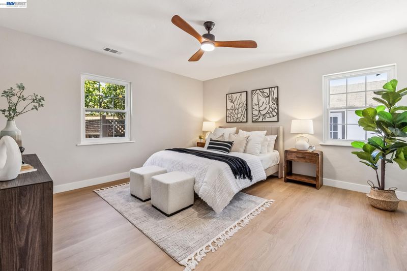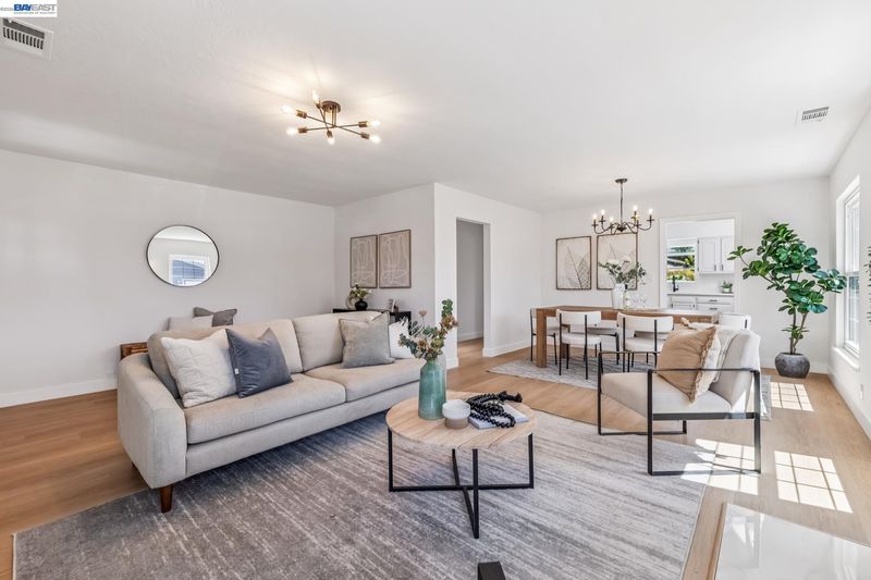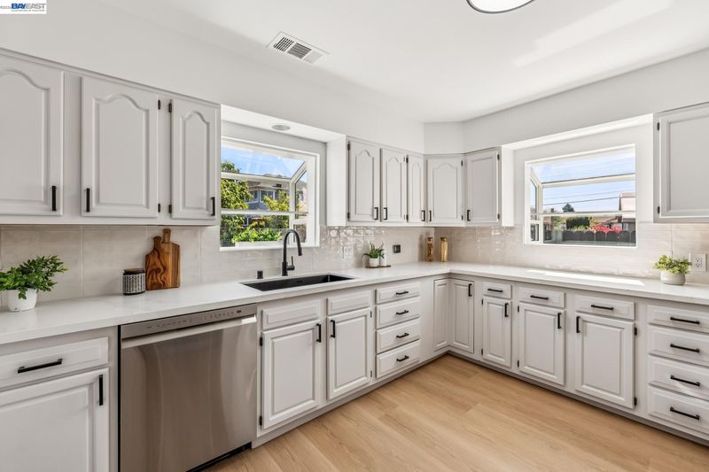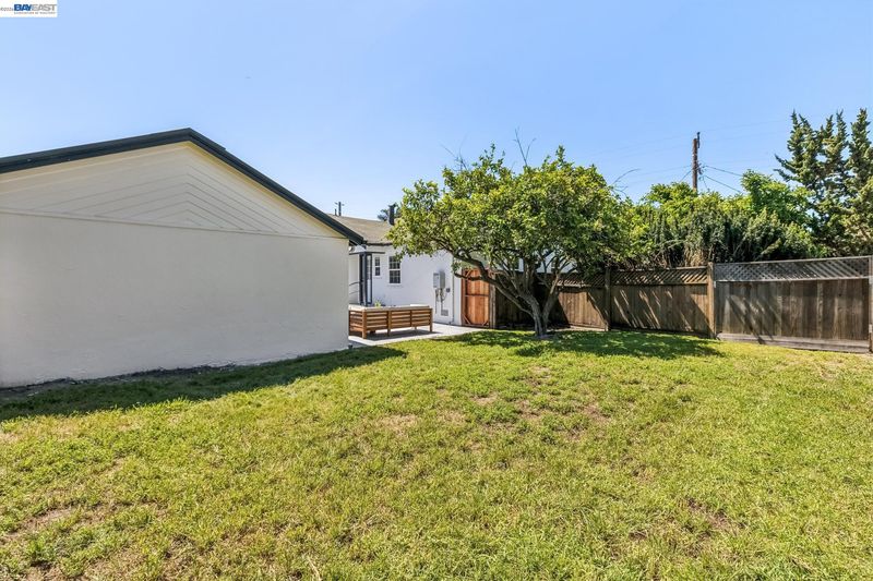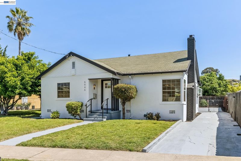 Tucked away on a quiet street in the Las Palmas neighborhood, 9946 Dante Ave in Oakland offers a beautifully updated 2-bedroom, 1-bathroom home designed with today’s buyer in mind. From the moment you arrive, you’ll appreciate the inviting setting, expansive lot, and charming curb appeal. Inside, the home features luxury vinyl plank flooring throughout and an abundance of natural light that enhances the open, airy feel. The modern kitchen has been thoughtfully remodeled with sleek finishes and ample space for cooking and gathering, while the spa-inspired bathroom boasts a soaking tub, walk-in shower, and a stylish contemporary vanity. Step outside and discover the true versatility of this property, with both a spacious front yard and a large backyard perfect for entertaining, gardening, or simply enjoying the outdoors. The detached garage adds convenience and potential for additional use. Ideally located near Downtown San Leandro, regional parks, shopping, and dining, this home combines comfort, style, and accessibility—making it a fantastic opportunity for buyers looking to settle into a move-in-ready home with room to grow.