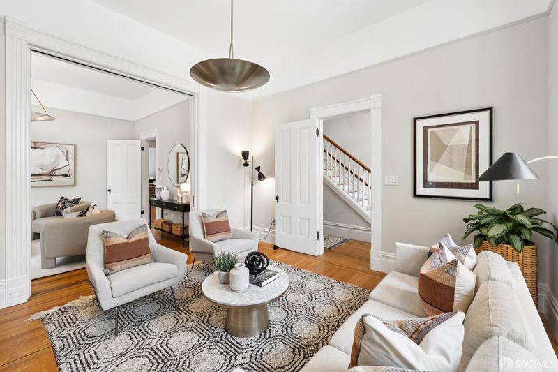 Back in 1885, Hayes Valley was the edge of San Francisco, and it was where the coolest people were moving to build a new kind of mansion -Eastlake Stick - to house their loved ones. Now, as then, it's much the same - at the very center of San Francisco cultural life and where everyone wants to be. This grand home feels as fresh and exciting as it did 141 years ago. You are welcomed by a double doored entry, elegant entertaining rooms on the left and a sweeping curved staircase to the bedroom level on the right. At the rear of the main floor, past a half/bath, the open dining room/kitchen are perfect for, well, spending most of your time together (w/Viking range & stylish combo walnut/soapstone counters). The upper level features a two-room primary suite at the front, with custom built in closets, romantic window seat and huge bath with a soaking tub, double vanity and step in shower + two more large bedrooms and a bath + laundry. The lower level compliments the main house as 3 more beds/1 bath + a kitchen that goes directly to the rear garden or it can be used as a separate legal 2/1 unit. The home is further enhanced with luxurious conveniences like an outdoor kitchen + built-in firepit and radiant floor heating. And all the center of everything that matters in SF.