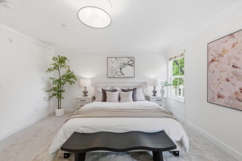 Nestled in the highly desirable Mondrian Community, this exceptional townhome is ideally positioned in one of the best locations within the neighborhood. Dining area facing the park, offering serene views, enhanced privacy, and one of the quietest settings in the community. Conveniently located just minutes from Downtown Mountain View, the Caltrain station, and Sylvan Park, this home provides excellent access to daily amenities while remaining peacefully removed from railway and highway noise. The thoughtfully designed interior features a spacious and comfortable layout with 3 en-suite bedrooms. The primary suite includes dual vanities and a large walk-in closet. The open-concept living area is complemented by upgraded stainless steel appliances, rich dark cabinetry, and a granite kitchen island blending style with functionality. Additional highlights include zoned heating and cooling, an in-unit laundry area, recessed lighting, and an attached two-car garage, perfectly suited for modern living. Residents enjoy community amenities such as a swimming pool, spa, and kids playground, creating a welcoming and comfortable lifestyle environment.