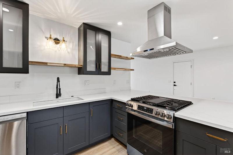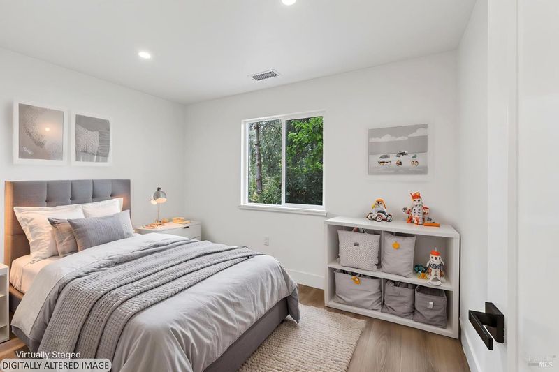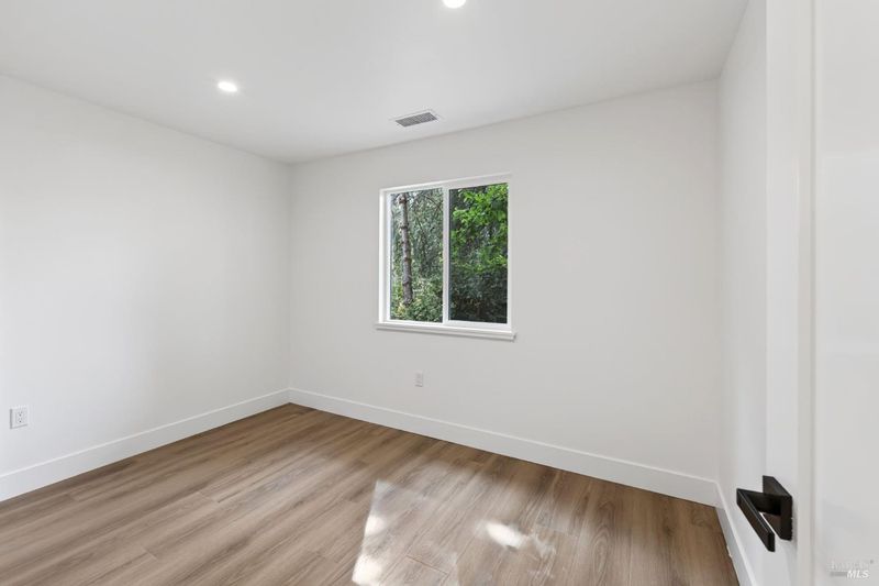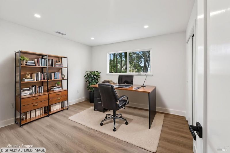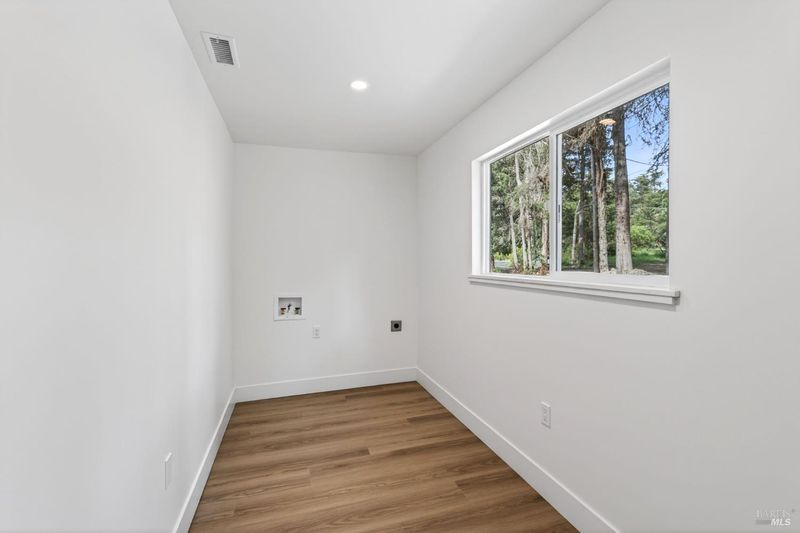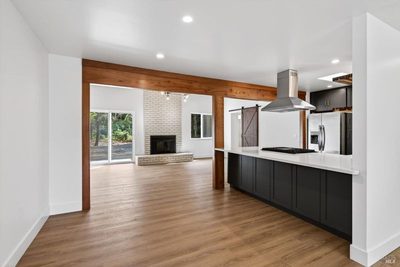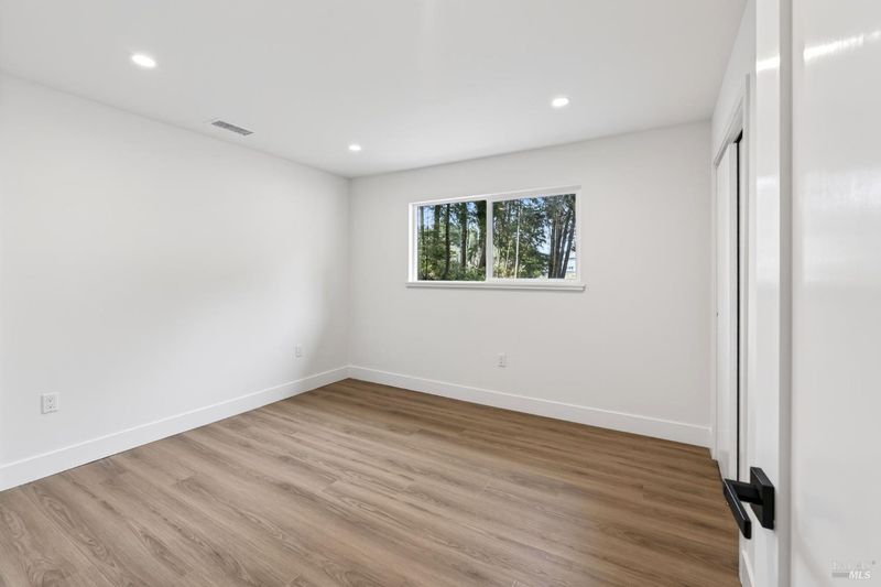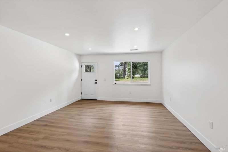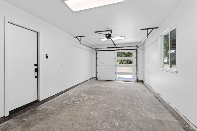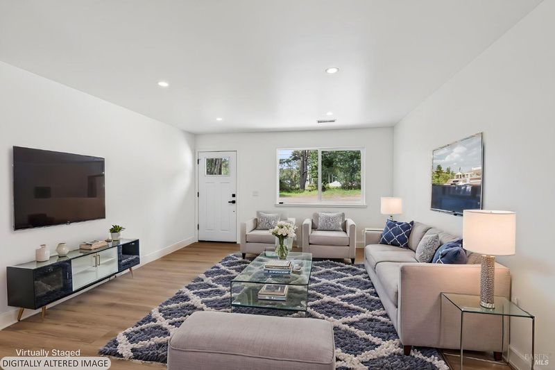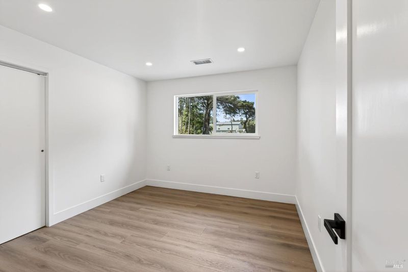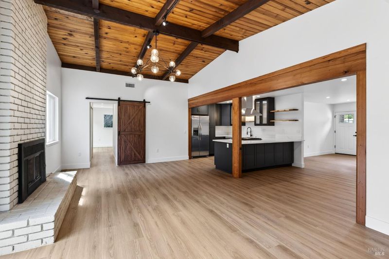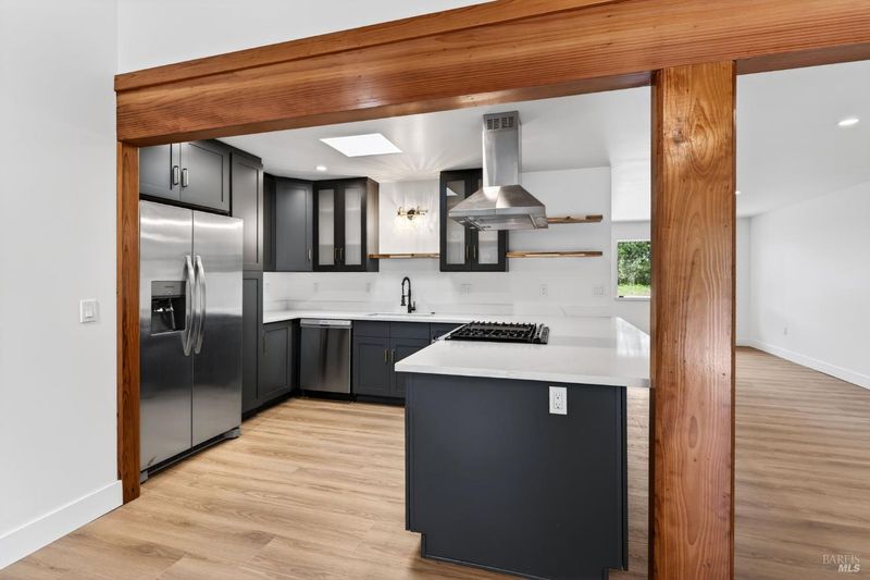 This stylish single-story home has been completely renovated from top to bottom. The inviting living room features vaulted tongue and groove open-beam ceilings, a chandelier, and a cozy fireplace. A sliding glass door on the south side opens to a backyard patio, while the other side flows seamlessly into the kitchen. Natural light pours in through a skylight, highlighting the kitchen's luxurious quartz counters, shaker cabinets, and floating shelves. Avid cooks will appreciate the new appliances and the propane stove set into a generous peninsula, ideal for gathering with family and friends at the bar seating. Luxury is in the details, like the solid-core interior doors and the convenient sensor lights in each closet. The primary bedroom has its own sliding glass door to a private backyard patio. The bathrooms sparkle with skylights and premium Bedrosian tiles that are comfortably heated from beneath. In addition to the four bedrooms and two baths, the home offers two different living room spaces and a large designated laundry room. The attached garage features an insulated garage door with windows and a beautiful Kona color steel plank exterior with flexibility for use as a workshop instead. Energy efficiency is top of mind with double-pane windows throughout, an on-demand propane water heater and central heating and cooling. A wood-burning fireplace adds extra warmth and that cozy ambiance on winter evenings. Situated on nearly an acre in the sunbelt, this property offers a blank canvas for your landscaping vision. Create garden beds, plant flowers, or establish a spacious lawn. A mystery fruit tree stands in the center of the backyard, possibly a black cherry, ready to reveal its bounty each summer. Surrounded by trees, the private setting feels like a peaceful country retreat, yet it's still conveniently close to town. Jug Handle State Park is nearby with endless forest trails and the coast is beckoning from a couple miles away with beaches and stunning headlands viewpoints. Seize this opportunity to own a turnkey residence, and start enjoying the coastal life in style.