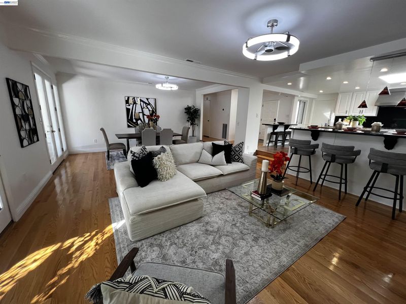Come see this highly sought-after Cabrillo Fair Oaks neighborhood home with a desirable floor plan. Located a few blocks (walking distance) from Oliveira Elementary School. It offers 5 bedrooms, 2 full baths, 1,872 square feet of interior living space. Large lot consist of 6,152 square feet. A 2 car garage. The spacious Living room with fireplace & Large Dining room have been combined into an extra large great room with sliding glass doors that lead into a large covered Patio for backyard access for entertaining. The Whole house has been Freshly painted in the interior and exterior. The large Updated Kitchen features, Freshly painted Cabinets, Pantry, Granite Tops, a Large Island with sink & stainless steel 6 burner gas stove. The spacious master bedroom with master bath consist of hardwood floors with walking in closet. Other fine features include central heating, central air conditioning. Double pane windows. Hardwood floors throughout the house. Conveniently located for an easy commute to the Silicon Valley by HWY 880 and Dumbarton Bridge. Close to shops, parks, restaurants, Quarry Lakes, and Bart Station. Located in a Highly Sought after neighborhood with high rated Fremont Schools: Oliveira Elementary School, Thornton Middle School and American High School.