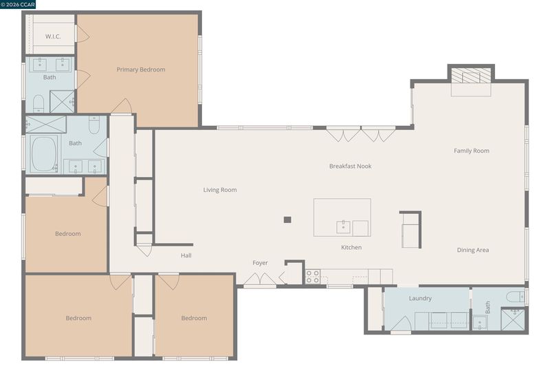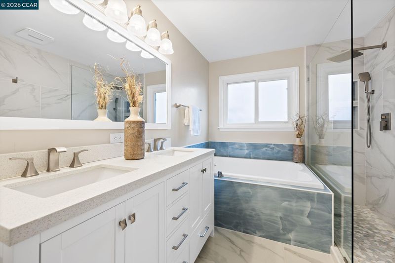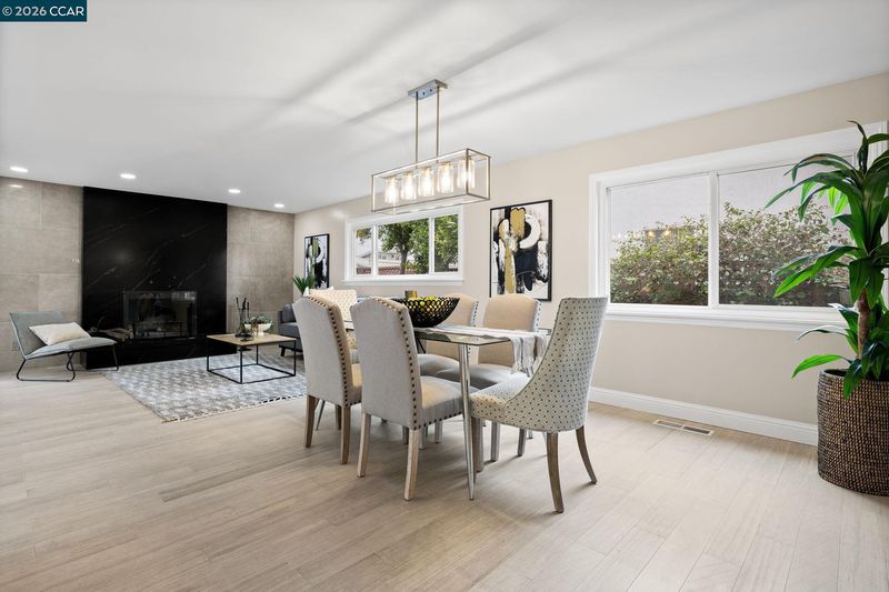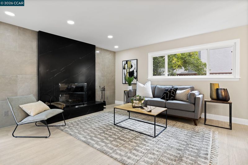 Completely updated & redesigned, this single-story home offers modern finishes, open living & a spacious backyard retreat in a well-established Concord neighborhood near shopping. A bright great room with wide-plank flooring, recessed lighting & oversized windows flows seamlessly into the dining area & remodeled kitchen, creating an expansive open-concept layout. The kitchen features a large island with dark stone counters & bar seating, white shaker cabinets, stainless steel appliances, farmhouse sink & abundant storage. Expansive bi-fold glass doors fully retract to the covered patio for true indoor-outdoor living. A separate family room showcases a dramatic floor-to-ceiling fireplace with sleek black slab surround. The primary suite offers backyard views, walk-in closet & an updated bath with dual vanities & tiled walk-in shower. Three additional bedrooms offer flexibility, with a remodeled hall bath featuring dual sinks, jetted tub & glass shower. A dedicated laundry room with storage & an adjacent full bath. The private backyard includes a covered patio, expansive lawn, mature landscaping with citrus trees & wide side yard. Close to shopping, 12 years of nearby schools including two established private high schools, BART & commuter routes.
