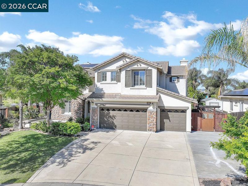 Welcome to 2052 Great Meadow Court, a Brentwood home that lives much larger than the three bedrooms on record. Fresh paint, great flow and a main level flex room next to a full bath make everyday living and hosting easy. Use that room as a guest space, office, playroom or hobby room. Upstairs, the spacious primary suite offers its own retreat plus a balcony for morning coffee or evening wind down time. A large bonus room upstairs is perfect as a media room, teen space or extra sleeping area when you need it. Outside, the backyard is where everyone will want to be, with a beautiful pool, patio for dining and lounging, room for a basketball area and a charming custom playhouse that stays with the home. Add in the three car garage and leased solar panels that help offset electricity costs for the house and you have a home that truly lives well. Open House hosted by Jaz Chand Call or text 925.250.9611