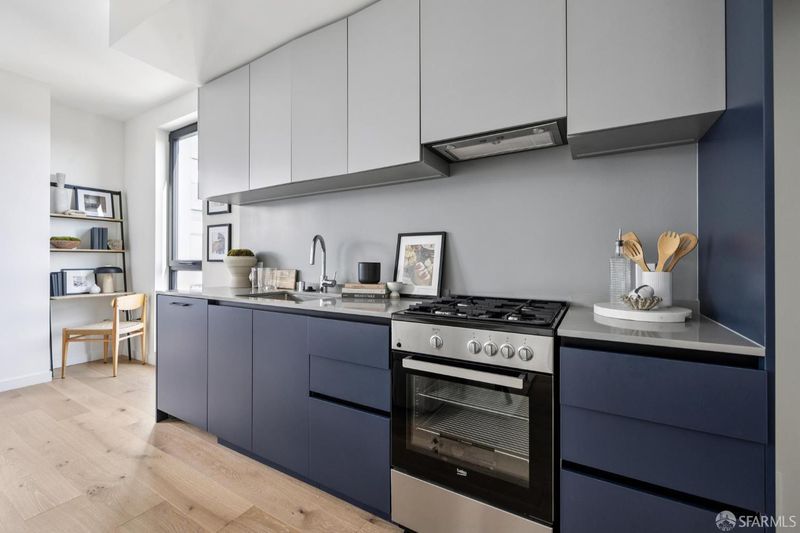 One-bedroom residence with quiet street exposure and views toward downtown San Francisco and the Salesforce Tower. Elevated above surrounding streets, the home offers a serene setting with the bustling city at your feet. Interior finishes include quartz countertops, white oak flooring, and a streamlined kitchen equipped with a gas range and integrated Bosch dishwasher. Central air conditioning and heating ensure comfort in every season. Residents enjoy an attended lobby and a rooftop terrace with panoramic city views, seating areas, outdoor grills, and a dedicated dog relief area. Secure bicycle storage and smart entry via the Latch system complete this thoughtfully designed home.