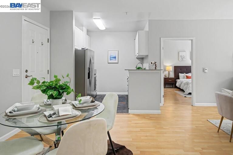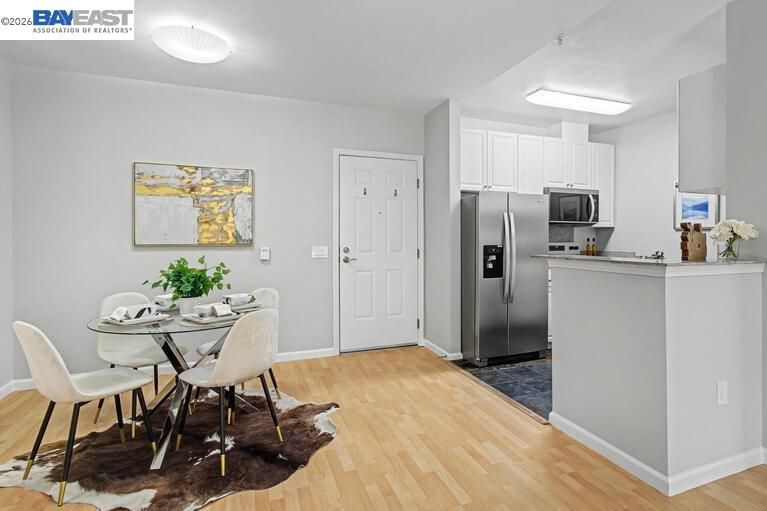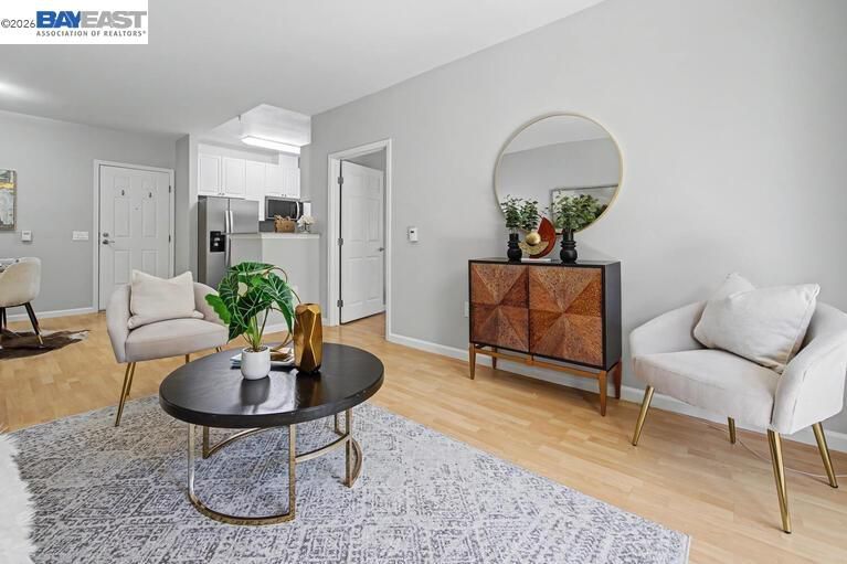 Welcome to this beautifully refreshed 2-bedroom, 2-bath condo in a desirable gated community in San Mateo with access to top-rated schools. This move-in-ready home features high ceilings and tile flooring that create a bright and open living space. The updated gourmet kitchen includes brand-new appliances—refrigerator, stove, microwave, dishwasher, and garbage disposal—perfect for everyday living and entertaining. An adjoining dining area provides a comfortable space for meals and gatherings. The spacious primary suite features a mirrored closet and a private en-suite bath with a shower-over-tub combination. The second bedroom and full bathroom offer flexibility for guests, family, or a home office. Recent upgrades include fresh interior paint, new lighting, mirrors, and updated electrical outlets throughout. The home also includes the convenience of an in-unit washer and dryer. Residents enjoy a beautifully landscaped, oversized courtyard—an ideal place to relax and unwind. The gated community also offers secure basement garages for parking. HOA covers garbage, water, and common area maintenance. Conveniently located near shopping, dining, parks, and major commuter routes.