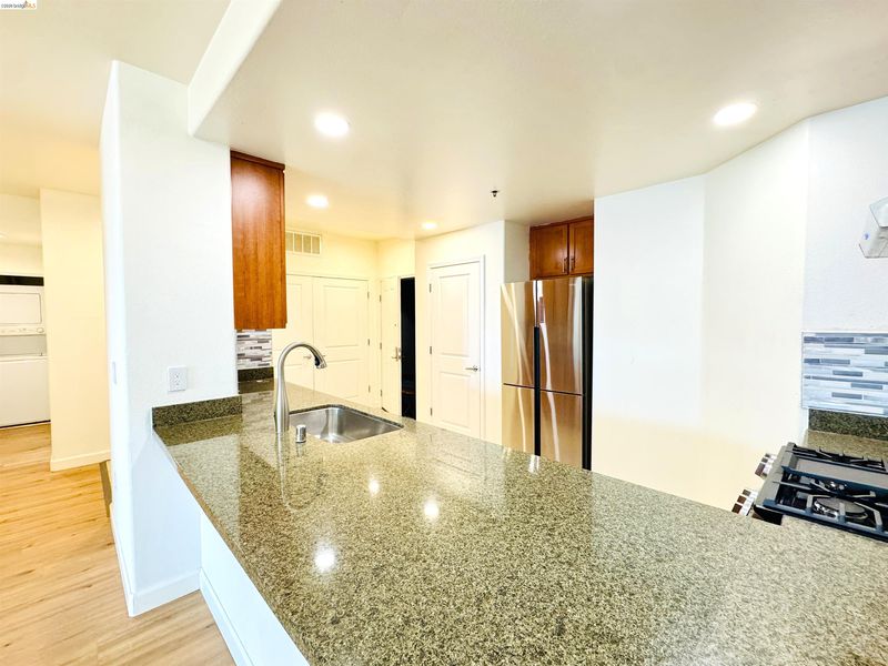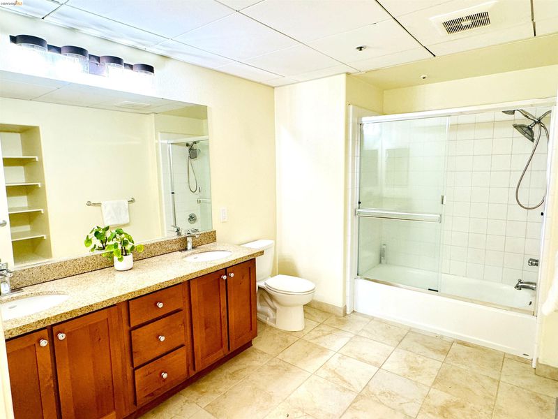 Situated in the heart of Chinatown, this home offers unbeatable access to BART, Amtrak, Highways 880/980/24, Alameda, Jack London Square, and more. Enjoy the vibrancy of urban living while benefiting from the tranquility of a secure complex featuring a rooftop garden and an impressive high ceiling lobby.This spacious 2 bedroom condo is located on the 3rd floor and offers a bright, airy atmosphere throughout. The open floor plan includes in unit laundry, central heating and air conditioning, and triple pane windows for enhanced comfort and energy efficiency. The HOA dues include water, sewer, garbage, and one assigned underground parking space, providing excellent value and convenience.