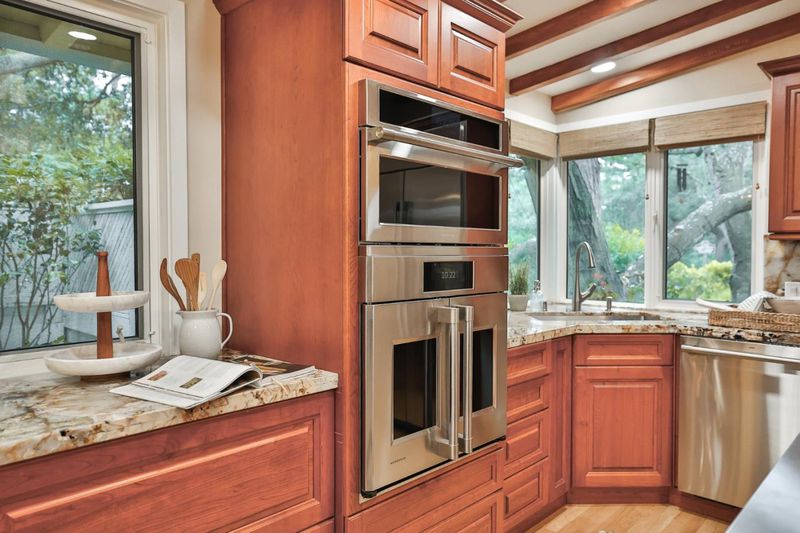 Nestled into a corner within even walking distance of Carmel by the Sea and the world famous Carmel Beach. This 3 bed, 2 bath cottage was recently transformed by over $600k in renovations. Enter through the dutch door into the chefs dream kitchen with all new stainless Monogram appliances to include, 6-burner gas cooktop, speed oven and oversized refrigerator. Effortlessly entertain on the oversized island adorned with durable rare Maranello granite counters from Brazil and custom soft close custom cherrywood cabinets. Relax and unwind in the ample living room with beamed, vaulted ceilings and Carmel stone fireplace. Floor to ceiling windows beckon you into the fully fenced, private backyard with new gas fire-pit. Hall bath was updated with a tasteful combination of solid granite slabs in the shower, marble floors and skylight. Large primary bedroom is ideally located in the back of the home with ensuite bath that was also recently upgraded with walk-in solid granite slab shower, dual vessel sinks and skylight. Dont miss this turn-key Carmel charmer!