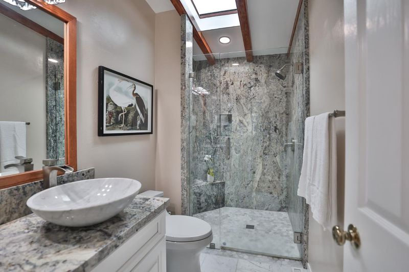 - Double Sinks, Full on Ground Floor, Marble, Primary - Stall Shower(s), Skylight, Updated Bath, Other