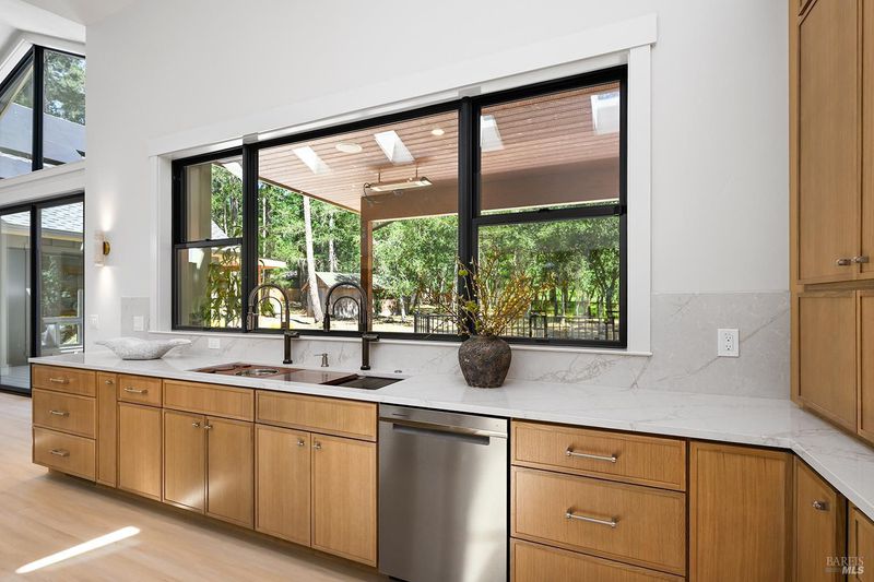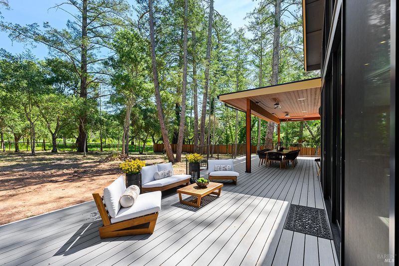 Set on a peaceful lane in one of Santa Rosa's most serene settings, 554 Shady Acres Lane offers a rare blend of privacy, scale, and refined design. Surrounded by majestic trees and perfectly positioned across from picturesque vineyards, this nearly 3-acre flat property delivers a sense of quiet escape with sweeping vineyard views from the front of the property and no home directly behind to interrupt the tranquility. Completely reimagined and rebuilt, this stunning single-level residence spans approximately 4,055 square feet, featuring 3 bedrooms and 4.5 bathrooms, and an expansive bonus room perfect for a playroom, media room, or office. The home showcases high-end finishes and thoughtfully curated custom design elements throughout, all enhanced by an abundance of natural light. At the heart of the home is an expansive chef's kitchen with a generous layout, high-end appliances, dual sinks, and a fully equipped butler's pantry ideal for both everyday living and effortless entertaining. Seamless indoor-outdoor flow leads to over 1,400 square feet of covered deck space, complemented by covered patios with built-in heaters, creating year-round gathering spaces. The expansive grounds offer endless possibilities, including ample room for a pool or outdoor retreat, all within a private, idyllic setting that feels worlds away while still being conveniently located within minutes of downtown Santa Rosa and close proximity to Sonoma and more. A true must see to appreciate!