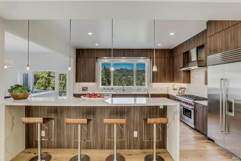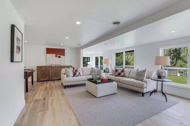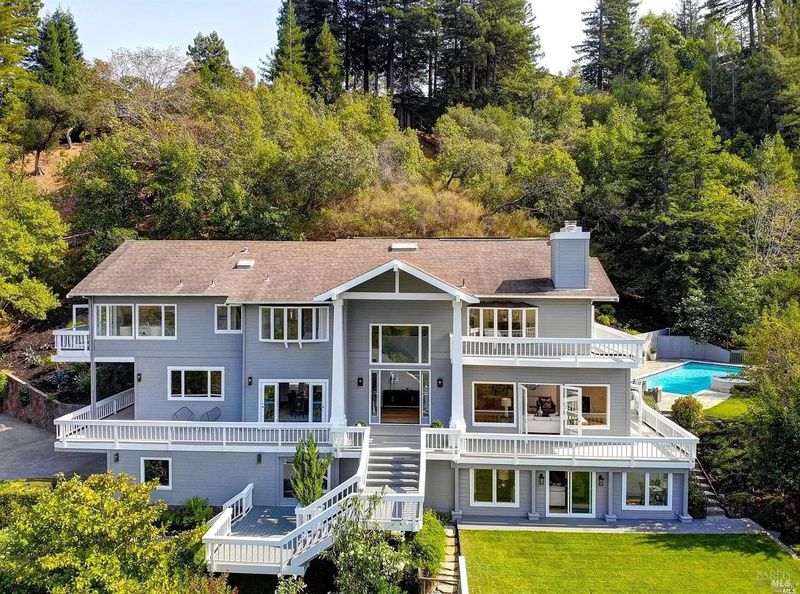 A rare opportunity to experience the best of Kent Woodlands living. This expansive six-bedroom, six-and-a-half-bath estate combines airy modern design with timeless finishes, offering a perfect balance of sophistication and comfort. Soaring ceilings and generous open living spaces flow seamlessly to the outdoors, where resort-style amenities await: a sparkling pool, elevated spa, sport court, and sweeping lawns framed by mature landscaping. Designed with versatility in mind, the home features both upper and lower-level family rooms, along with a private suite ideal for guests, au pair, or multi-generational living. Set on more than four acres, the property is situated at the end of a long, semi-private drive and enjoys serene ridge-line and valley views. Indoor/outdoor entertaining is effortless, with patios and gathering spaces that make the most of Marin's climate. Additional highlights include a three-car garage with additional parking space on the driveway landing, updated custom finishes, and close proximity to Kent Woodlands' prized hiking and biking trails. Located in the award-winning Bacich School District, this is a home that truly elevates everyday living.