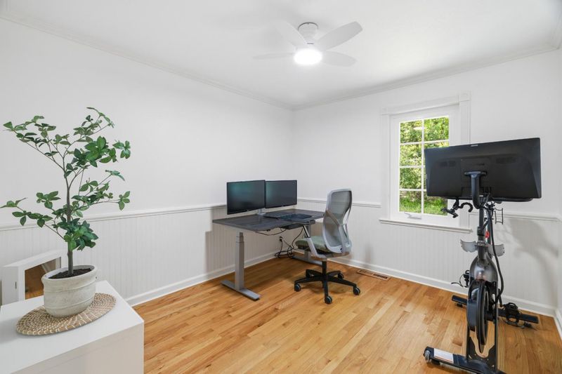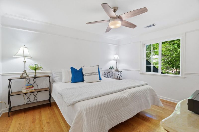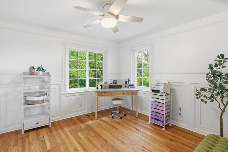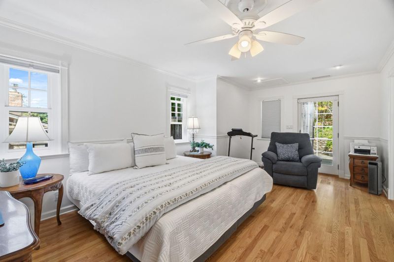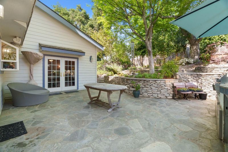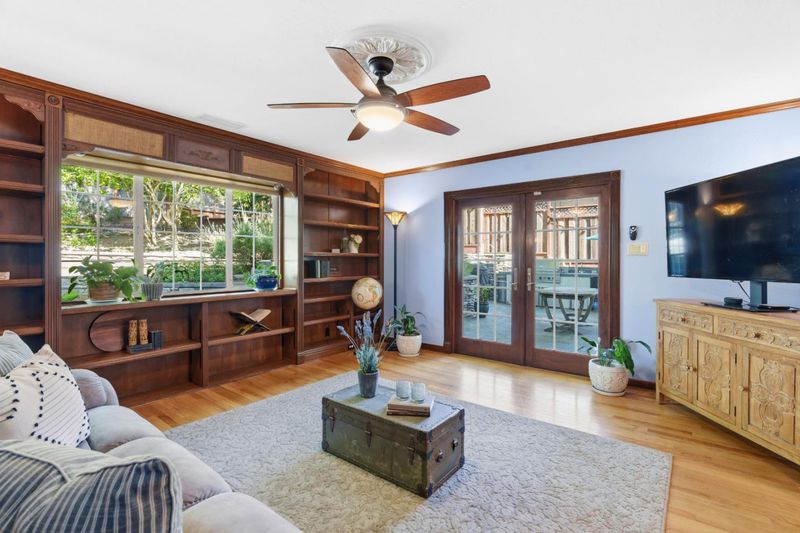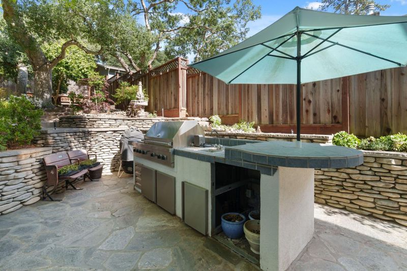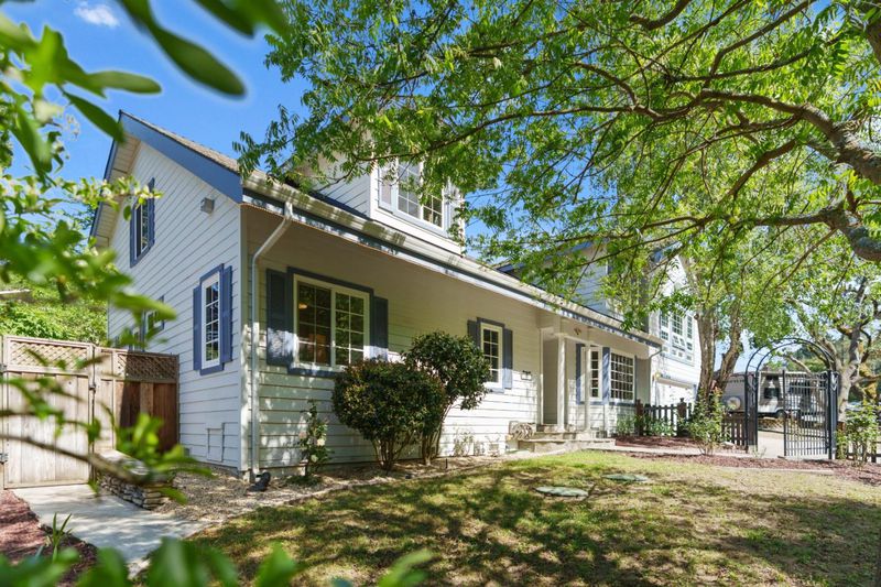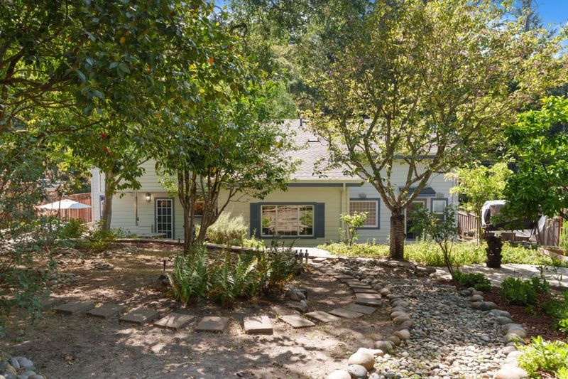 Sunny, cheerful, and unique colonial style 4bd/ 3ba home with impressive grounds located in accessible Ben Lomond. From the paver driveway and through the front yard you have a practical layout including living room, study, kitchen, laundry, guest bath, and regal dining room, along with 3 bedrooms. The ground floor primary suite has access to the backyard, custom built-in closet, and a spacious bath offering a jacuzzi tub and separate shower. The study features built-in book cases and cherry wood folding doors. Upstairs you will find the 4th bedroom, a full bath, and family room with high ceilings, built-in bookcase, artistic stained glass, and built-in projector fitted with a hidden automatic movie screen, it's like your own private theater! Off this room is an additional 800 sqft walkable attic space perfect for storage and creativity. Oak hardwood flooring throughout, double pane windows, and French doors lead to a park-like garden in the backyard lush with mature plants, elegant flowers, and meandering paths. Complete with an outdoor kitchen for proper entertaining. City water, passing septic, comcast high speed internet, and natural gas. Whether you're heading to work in Silicon Valley or Santa Cruz this location makes it easy all within a friendly walkable neighborhood.