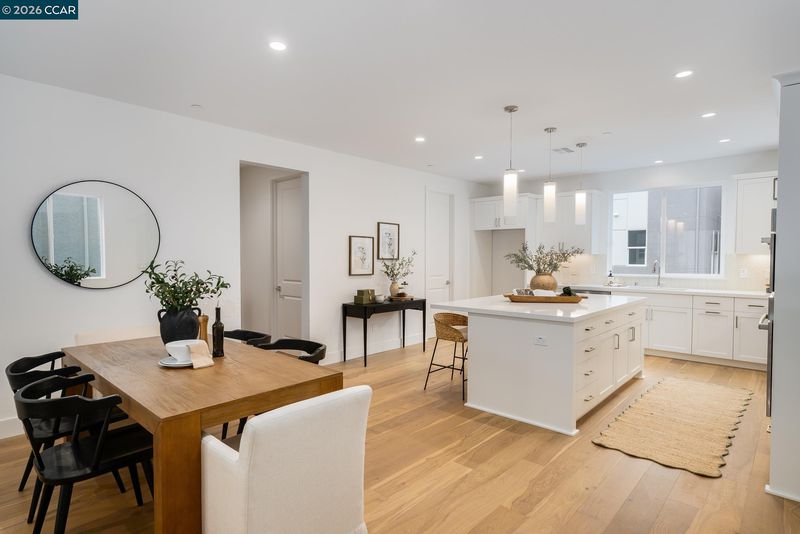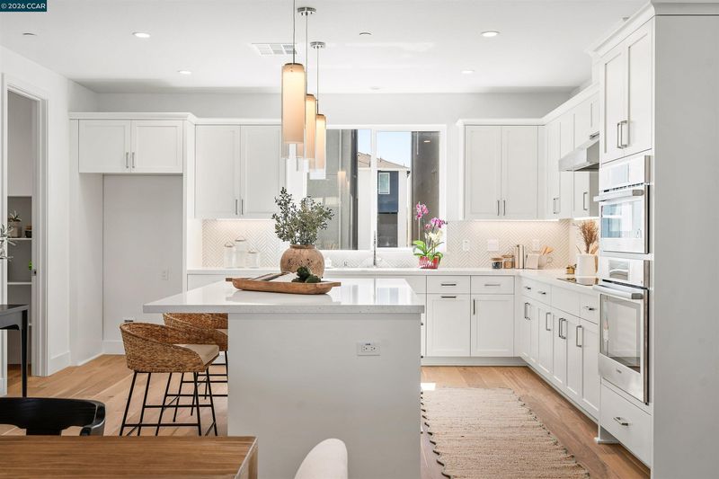 Move-in ready new construction home by award-winning SummerHill Homes, in highly desirable City Village community. Three-story row home w/ over $67,000 in upgrades blending contemporary architecture with curated designer finishes. Featuring three levels of modern living, this home showcases an open-concept main level with expansive living & dining areas, enhanced by wide-plank hardwood flooring in a warm Vintage Wicker tone. Chef’s kitchen has Bosch 800 Series ss appliances, induction cooktop, convection oven, speed microwave, stainless hood & dishwasher. White shaker cabinetry, polished nickel hardware, quartz slab countertops & full-height vertical herringbone mosaic backsplash create a clean, sophisticated aesthetic. Throughout the home, recessed LED lighting, under-cabinet lights, CAT6 structured wiring, & pre-wiring for security system. Snowbound interior paint & smooth panel doors enhance the light, airy feel.