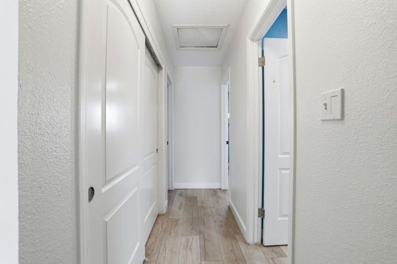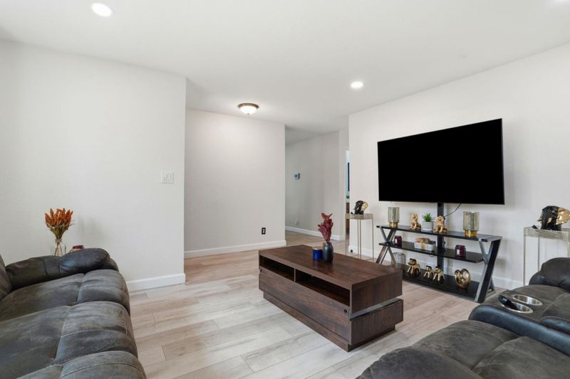 Beautiful move-in ready single-family home featuring three bedrooms and two full bathrooms. Enjoy a spacious updated kitchen with granite countertops, tile flooring, and wood cabinetry. Recently painted with updated bathrooms, this home also offers dual-pane windows and laminate flooring throughout the living room, hallway, and all three bedrooms. Additional features include a two-car garage, central heating, and air conditioning (A/C unit approximately 6 months old), and an owned solar system. The large, low-maintenance front and backyard feature artificial turfperfect for entertaining family and friends. Located in a desirable neighborhood, close to shopping centers, grocery stores, and with easy freeway access.