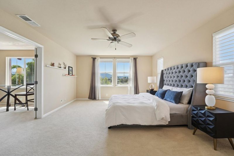 Nestled at the top of a serene cul-de-sac, this stunning home offers exceptional privacy with only one neighbor and no homes behind. The backyard is a personal outdoor retreat, showcasing breathtaking sunset views and open sky. Inside, the multi-level layout creates spaciousness: a welcoming reception area, formal living room with a cozy fireplace, bright dining room overlooking the yard, and a high-ceiling kitchen that flows into a large family room with a second fireplace. Upstairs, discover four bedrooms, including a primary suite with a bonus retreat and sweeping mountain and city-light vistas. Located in the sought-after Portofino neighborhood, enjoy quick access to 85, 87, Light Rail, parks, shopping, and downtown San Jose. This unique blend of privacy, elevation, natural light, and prime location makes this home a must-see!