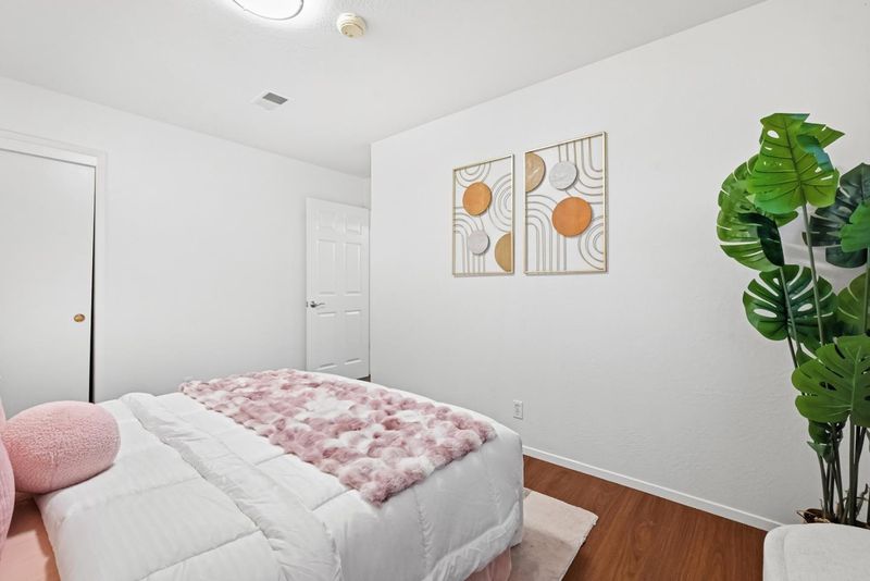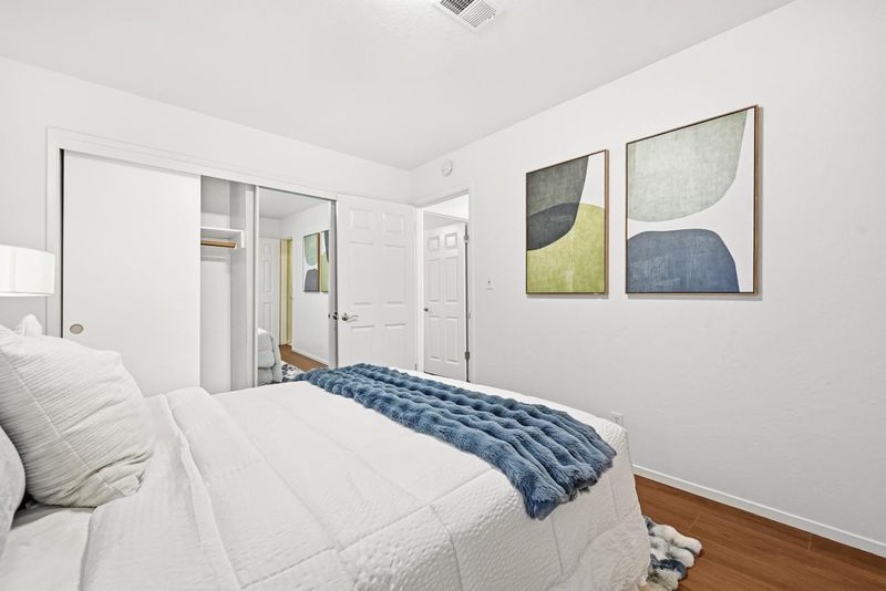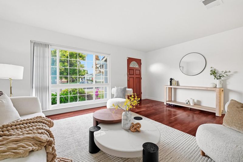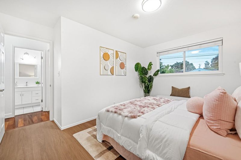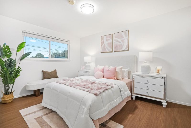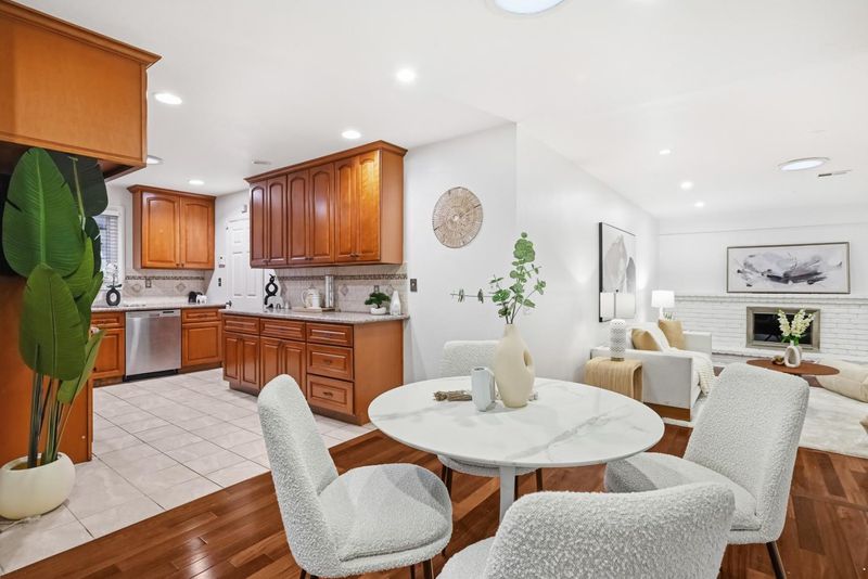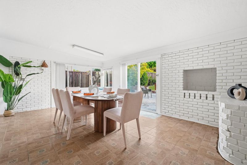 Single-story home in Mission San Jose area with functional layout and bonus sunroom space. Interior features include hardwood flooring, large windows, and a family room with fireplace. Lighting includes flush-mount and recessed fixtures throughout. Kitchen includes raised-panel wood cabinetry, tile flooring, and stainless steel appliances (range, hood, microwave, dishwasher). Enclosed sunroom provides additional usable space with decorative painted brick accent wall, sliding glass door to backyard, built-in seating, and built-in countersuitable for lounge, office, or playroom use. Bedrooms are spacious and bright with built-in closets, including one bedroom with new luxury vinyl flooring. Bathrooms include floating vanities, sliding glass shower doors, and tub-over-shower configuration. Hall closet for additional storage. Located near Mission Valley Elementary, William Hopkins Middle, and Mission San Jose High. Close to parks, shopping, and international dining. Easy access to Hwy 84, 680, 880, and Mission Blvd