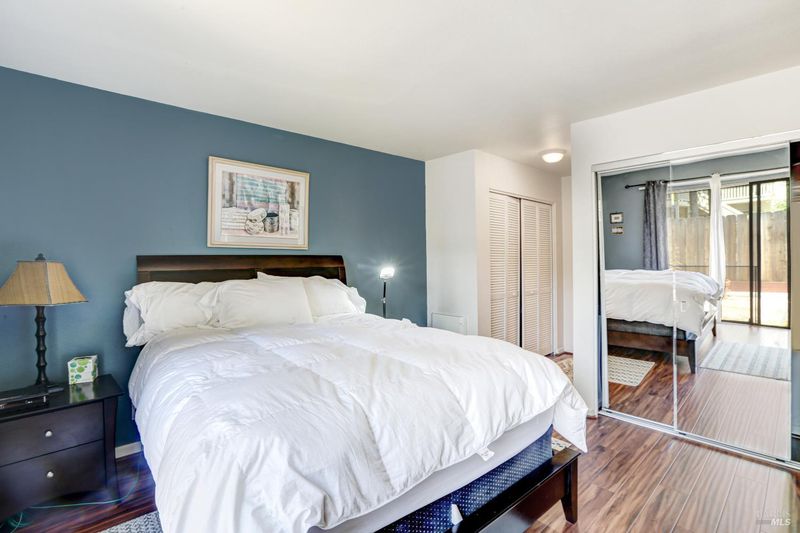 This is a single story end-unit condominium with an attached garage, located in one of the most desirable complexes in Sonoma. The kitchen has been recently remodeled with Quartzite countertops, new sink and faucet. Both the sunken living room and the primary bedroom have new engineered flooring and sliding glass doors leading to the partially covered rear patio. This exquisite condo is close to shopping, restaurants, wineries, and the historic Sonoma Plaza. The La Mancha complex occupies an extra large parcel that backs up to open space and the Sonoma Creek. The community rec center offers a large space for entertaining, billiards, kitchen space, and of course a swimming pool.