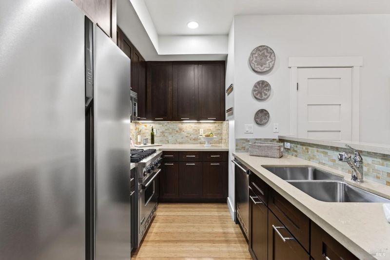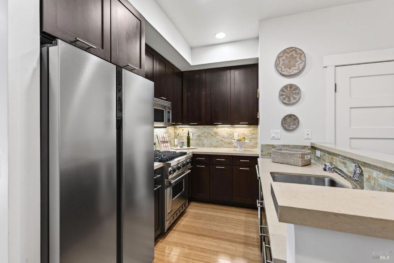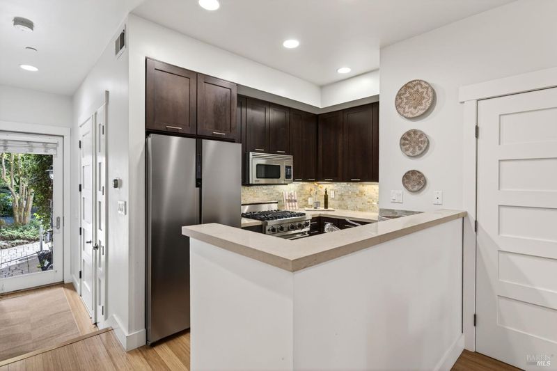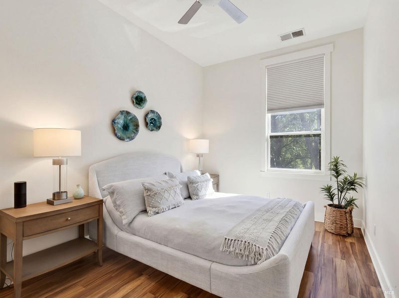 Turnkey and effortlessly stylish, this 2 bed, 1.5 bath residence at The Grove Lofts is your chance to own a refined in-town retreat. Experience modern urban design paired with high-end finishes, from warm bamboo flooring to sleek quartz countertops. The inviting living room features a cozy gas fireplace and French doors that open to your own private patio perfect for indoor-outdoor living. Tucked within a serene redwood grove, yet just a short stroll to Healdsburg's vibrant plaza, this home offers the ultimate blend of tranquility and convenience. Whether you're looking for full-time living or the perfect wine country escape, this is sophisticated Healdsburg living at its finest.