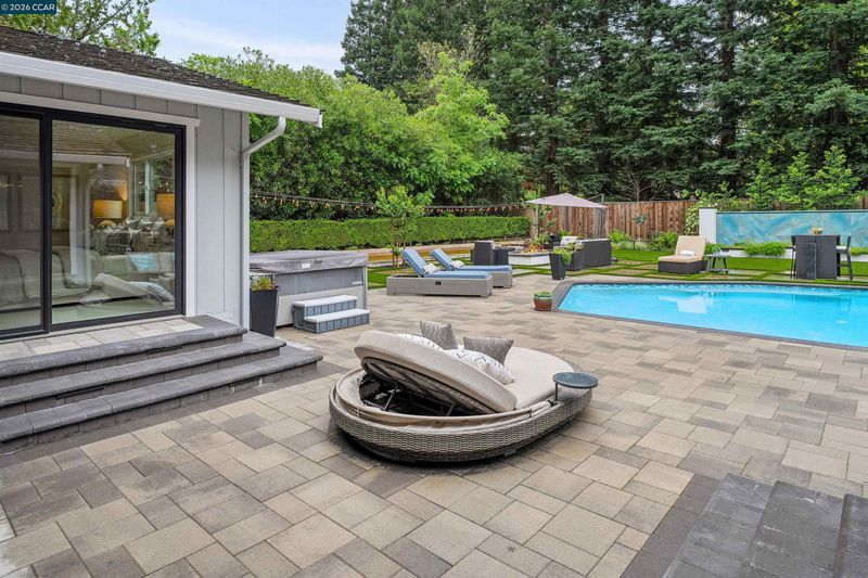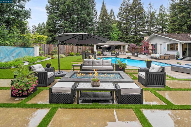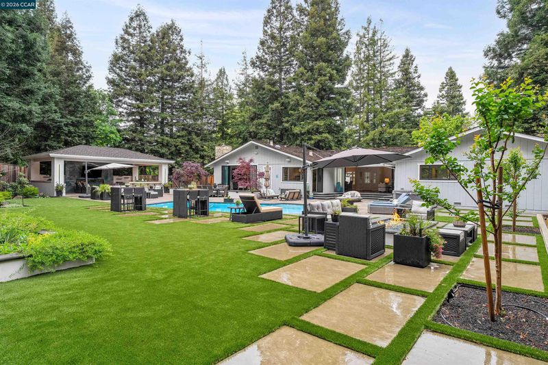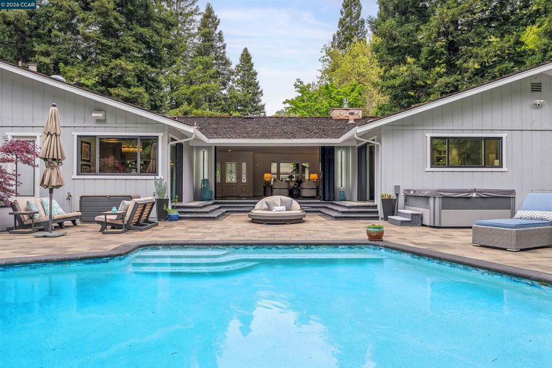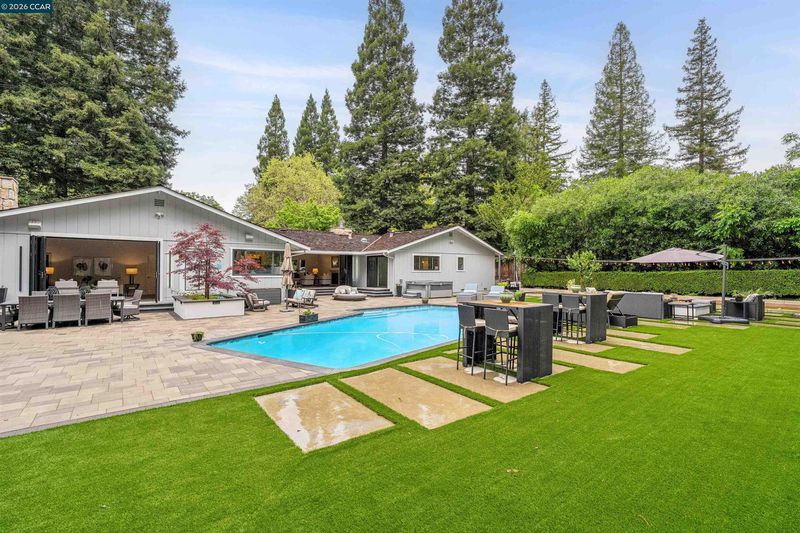 Nestled in the highly sought-after Hidden Oaks community, this beautifully updated single-story home offers 4 bedrooms, 3 bathrooms, and approximately 2,700 sq ft of effortless living. The freshly painted interior, new carpet throughout, and updated vanity mirrors and lighting create a bright, modern feel from the moment you step inside. Designed with comfort and functionality in mind, the open floor plan features a spacious kitchen that flows seamlessly into the main living areas—ideal for both everyday living and entertaining. Expansive Catina doors create a true indoor-outdoor experience, opening to a stunning backyard built for gathering and relaxation. Enjoy a resort-style setting complete with a large pool, hot tub, stylish cabana, two fire pits, and a bocce ball court—truly an entertainer’s dream. Lush, mature trees provide exceptional privacy, while the beautifully landscaped front yard adds to the home’s inviting curb appeal. A rare opportunity to experience easy, elevated living in one of Danville’s most desirable neighborhoods.