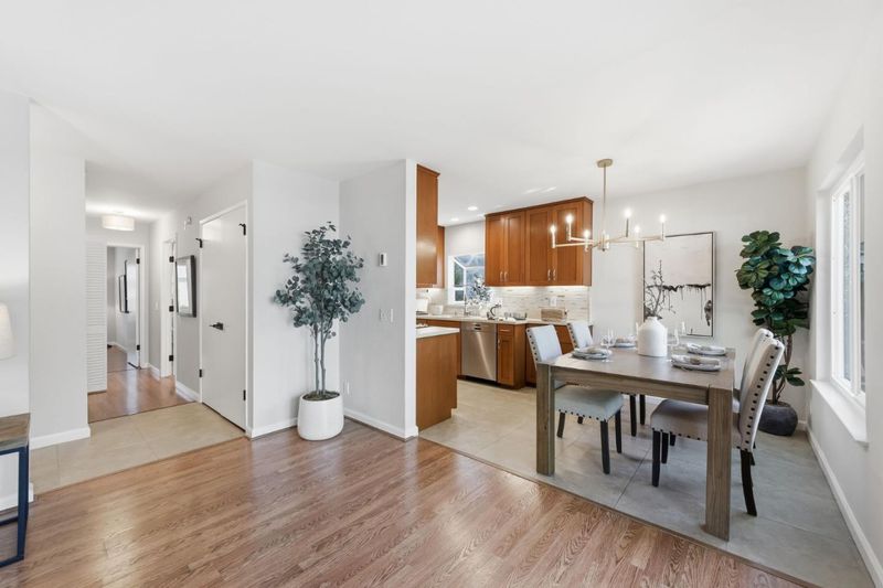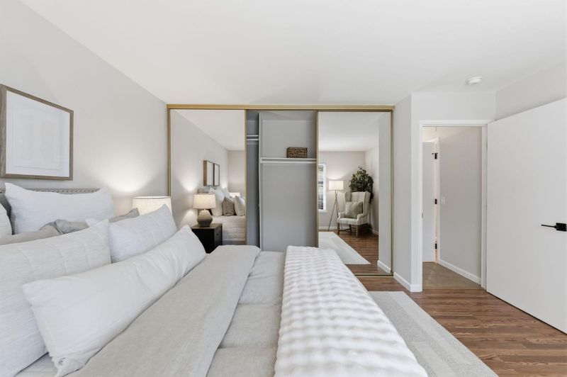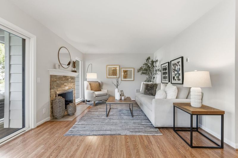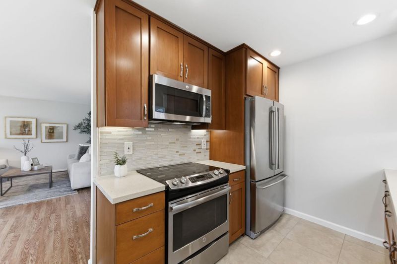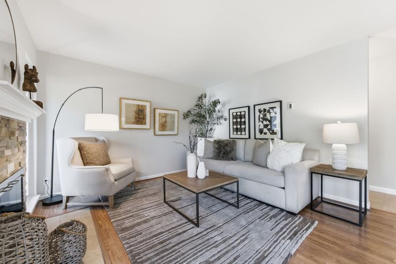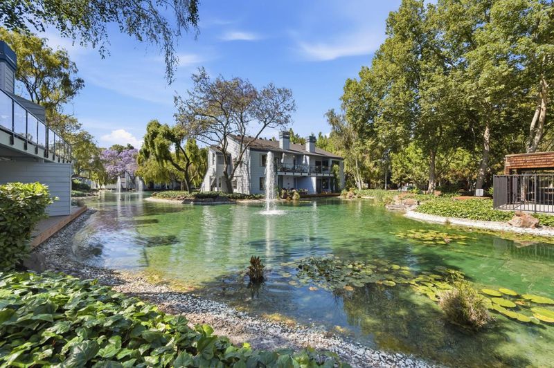 Tucked within the highly sought-after "The Waters" community at the corner of Middlefield and Shoreline, this beautifully updated 2-bedroom, 2-bath ground-floor residence offers a rare blend of tranquility and convenience in the heart of Mountain View. Set in one of the quietest enclaves, the home is surrounded by peaceful water features, gentle fountains, & mature shade trees, creating a serene, park-like retreat. Inside, the home unfolds with a warm, inviting flow, where the living and dining areas are anchored by a cozy fireplace and open to a private deck perfect for morning coffee or unwinding. The remodeled kitchen is both functional and refined, featuring shaker cabinetry a glass tile backsplash, & premium appliances including an Electrolux refrigerator and Bosch dishwasher. Remodeled tiled baths include a double vanity, while the layout offers a walk-in closet. Additional highlights include wood laminate & tile flooring, new windows, fresh interior paint, & indoor laundry with Bosch washer/dryer. Smart upgrades include a Nest Doorbell and MyQ Wi-Fi garage system. Private 1-car garage and 1 tagged parking space. Community amenities include a pool, spa, tennis courts, & a garden. Close to downtown, Caltrain, Stevens Creek Trail, & major commute routes.