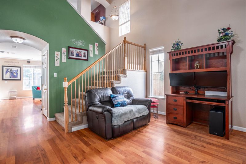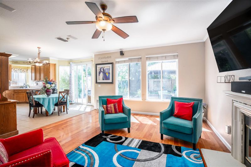 Stunning 4-bedroom, 3-bath residence showcasing soaring vaulted ceilings and an airy open-concept floor plan. The expansive kitchen flows effortlessly into the main living areasideal for everyday living and entertaining. A convenient indoor laundry and an extra versatile oversized room provides flexible space for a home office, media room, or play area plus brand new carpet in the primary suite. Outdoor living excels in a private, landscaped backyard oasis with a tranquil waterfall pond, mature fruit trees, grapevines, and a freshly renovated lawn. Practical amenities include a storage shed and fenced dog run. The garage is a workshop enthusiast's dream, equipped with a built-in workbench, large storage closets, overhead ceiling racks, and extensive shelving for superior organization. EV charging station a plus! Residents benefit from a nearby community center with a resort-style lagoon pool, lap pool, hot tub and a fully equipped fitness centerboth within walking distance. Located in the Natomas neighborhood with multiple parks nearby and convenient access to Highways 5 and 80, this home blends spacious living, thoughtful upgrades, and lifestyle amenities.