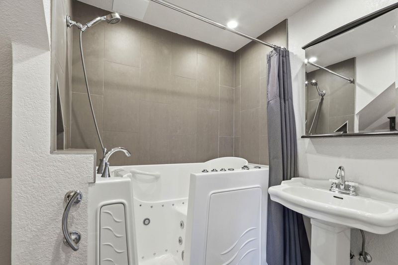 - Full on Ground Floor, Primary - Stall Shower(s), Shower and Tub, Skylight, Tub with Jets, Updated Bath