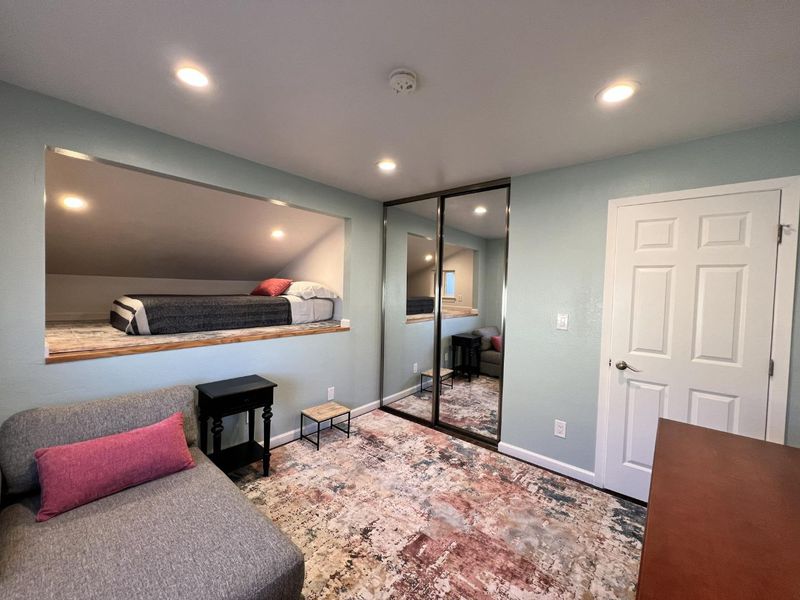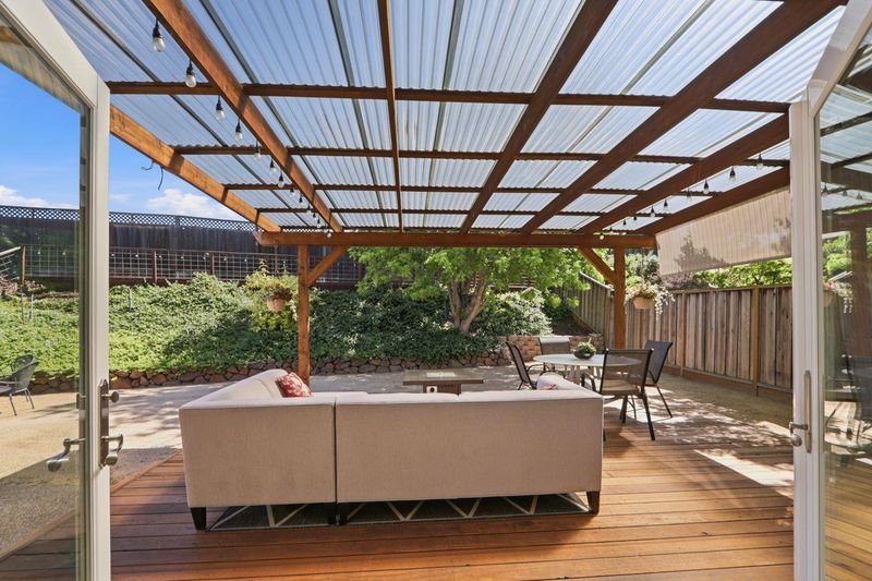 Located in Milpitas, this 1,910 SF home on a 7,280 SF lot features 4 bedrooms and 3 full baths. The first floor offers a versatile room with french doors opening to a private, fenced courtyard. A full bathroom with a walk-in jetted tub and shower makes it ideal for guests or multi-generational living. Up a few steps, natural light illuminates the heart of the home. The updated family room has a gas fireplace, and the remodeled kitchen features heat and stain resistant Dekton countertops, modern appliances, full wall pantry, and a built-in banquette for dining or gathering. Walk out to a covered 20x20 custom redwood deck via french doors for seamless indoor-outdoor entertaining, with roll-down shades for cooler days and lighting for evening living. The large backyard feels private and offers abundant side yard storage, dog run, and drought-tolerant landscaping with automatic sprinklers. Upstairs, a skylight brightens the hallway to four bedrooms with views of the valley or hills, including one with a sleeping loft. There are remodeled full bathrooms in both the hall and the primary suite, which has a stall shower and walk-in closet. LED lighting and owned solar panels add to efficiency, and A/C keeps it comfortable year round. So many features and so much to love! You are home.