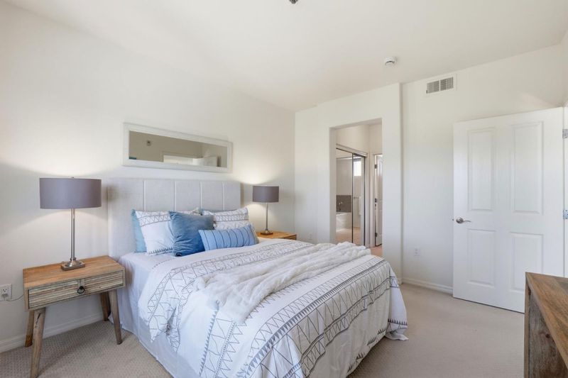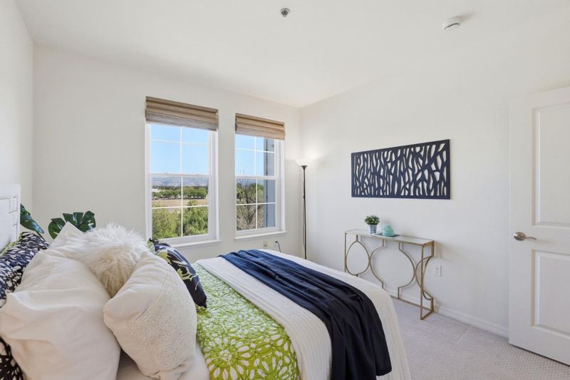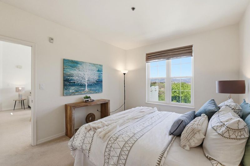Perched in the single best location in the Rivermark community, this stunning 2 bedroom, 2 bath penthouse residence offers a view that stops people mid-sentence. To the east, the Mt. Diablo Mountains rise in full, unobstructed glory. Below, the Guadalupe Trail and river wind through a ribbon of green that changes beautifully with every season. Every room frames the Mt. Diablo Mountains. Wake up to it. Cook with it in view. Wind down with it at dusk. The kitchen is fully updated with modern appliances and smart finishes, but honestly, the mountains make it unforgettable. Step outside your door and the community delivers. An Olympic-sized pool, a proper fitness center, and a private 18-seat movie theater. Your two garage spaces sits literally right next to the elevator, EV charging is on-site, and Rivermark Village puts great dining and shopping within a short walk. Every Thursday, a farmers market sets up right at your front entrance. The mountains. The river trail. The penthouse views. The life. It's all here. You ready for this?