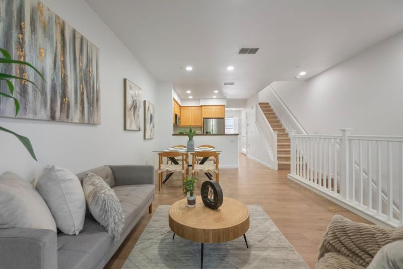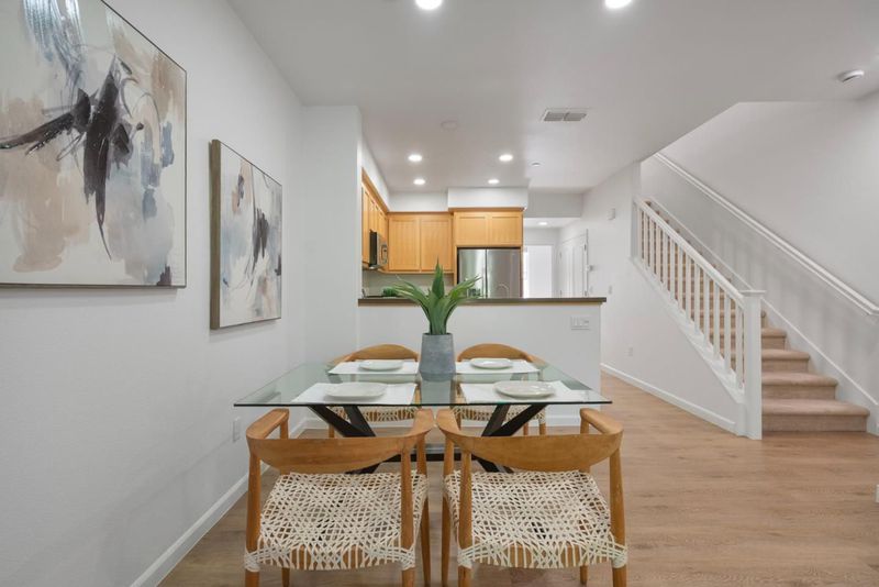 COMMUTERS DREAM | Impeccably maintained, move-in ready east-facing townhome in desirable Berryessa offering 1,522 sq ft with 3 bedrooms & 3 full baths. Bright, open-concept floor plan showcases soaring ceilings, abundant natural light, hardwood flooring in main living areas & mountain views from the living room & balcony. Updated kitchen features granite countertops & backsplash, stainless steel appliances, pantry, generous cabinetry & breakfast bar; perfect for everyday living & entertaining. Spacious primary suite includes a walk-in closet, dual-sink vanity, private toilet room, additional storage & sitting/office area. Upstairs secondary ensuite plus a main-level bedroom w/adjacent full bath provide ideal flexibility for guests, home office or multi-generational living. Welcoming entry w/large coat closet. Attached 2-car garage w/epoxy flooring, bright lighting, built-in shelving & ample storage. Additional highlights include central A/C, dual-pane windows, recessed LED lighting, & in-unit laundry. HOA covers water, garbage, roof/exterior maintenance, plus the park & play area. Prime location near Light Rail, BART, major bay area freeways, shopping (Costco, H Mart, Ranch 99, Great Mall), parks & top Silicon Valley employers including Google, Apple, NVIDIA, Cisco & Adobe.