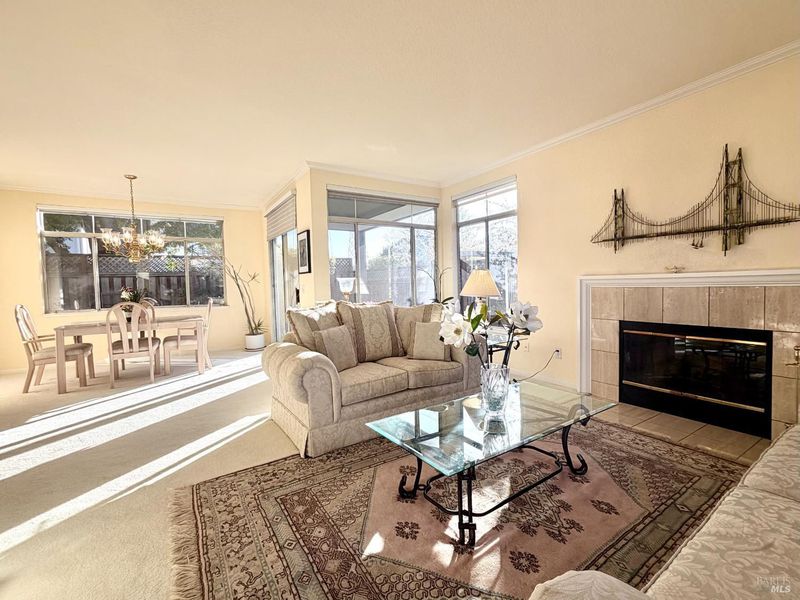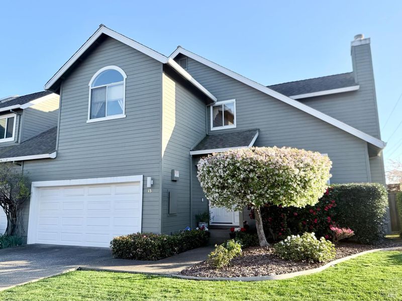 Located within the prestigious Bay Point Lagoon waterfront community, this elegant 1,822 sq. ft. townhome offers refined living with exceptional comfort, light, and privacy. A gracious formal living room with fireplace is filled with natural light and welcomes you, flowing seamlessly into the sophisticated formal dining area, creating the perfect setting for elegant entertaining. The beautifully designed open-concept kitchen and family room provide a warm yet luxurious gathering space. The kitchen features a center island, pantry, and generous preparation space, ideal for both everyday living and hosting guests. The adjoining family room opens to a private deck, creating seamless indoor-outdoor living. Upstairs, the home features three spacious bedrooms and 2.5 well-appointed tile bathrooms. The primary suite is a true retreat, highlighted by vaulted ceilings, a comfortable sitting area, a walk-in closet, and a spa-inspired bathroom featuring dual sinks, a soaking tub, and a separate shower. Additional features include an inside laundry closet and a two-car attached garage. The home is surrounded by professionally landscaped grounds with mature flowering trees, charming flower gardens, decorative stepping stones, and private lattice fencing, creating a serene and inviting outdoor environment. Ideally positioned on a premium corner lot within a quiet cul-de-sac, this residence offers both privacy and elegance. Residents of the Bay Point Lagoon waterfront community enjoy resort-style amenities including scenic walking paths, tennis and pickleball courts, a pool, spa, and clubhouse.