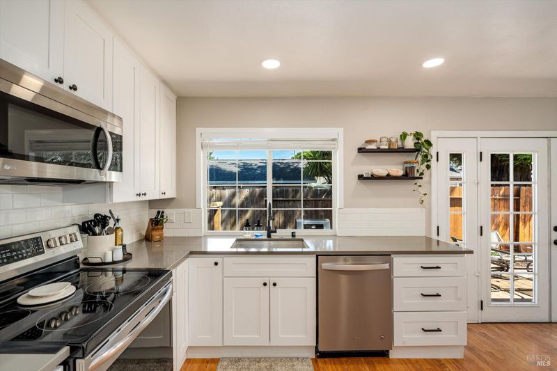 Tucked away on a peaceful cul-de-sac in Northwest Santa Rosa, 1526 Bruce Court presents a single-level home set on an expansive 8,000 sq ft lot. This property offers a lifestyle centered around comfort, flexibility, and indoor-outdoor connection. This 3-bedroom, 2-bath home spans 1,300 sq ft with an updated interior designed for both everyday living and entertaining. The remodeled kitchen features stainless steel appliances and updated cabinetry, seamlessly connecting to the dining area and main living space. Both bathrooms have been thoughtfully updated with clean, modern finishes, creating a fresh and functional feel. The layout also includes a separate living room with a fireplace that provides a second setting for downtime, gatherings, or a more relaxed atmosphere. Natural light flows throughout the home, with French doors leading to a backyard with lawn, patio space, and established landscaping. The setting works well for hosting, gardening, or simply enjoying the outdoor space. Additional highlights include a two-car garage, storage shed, and ample off-street parking, offering practical convenience to match the home's charm. Located near local parks, shopping, dining, and commuter routes, this home combines a desirable neighborhood setting with everyday accessibility.