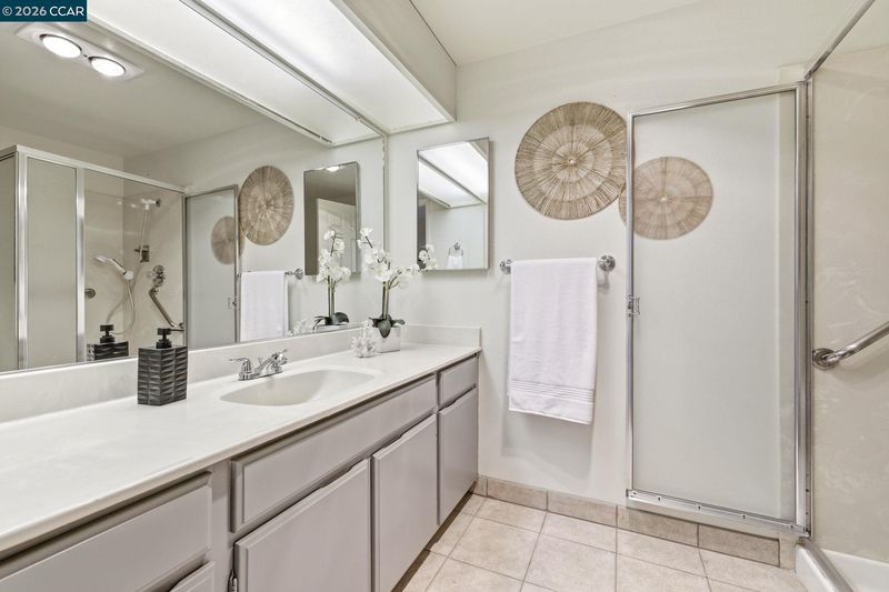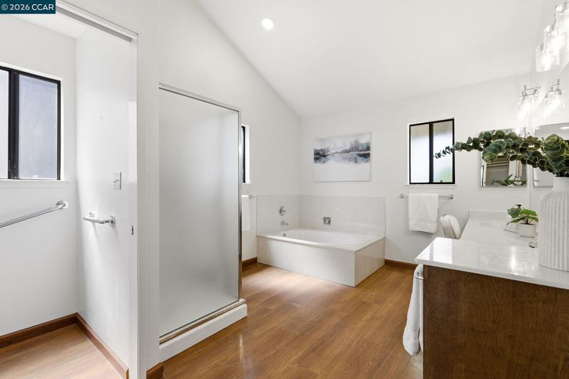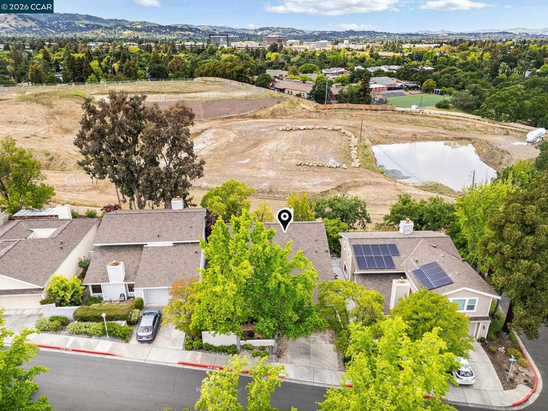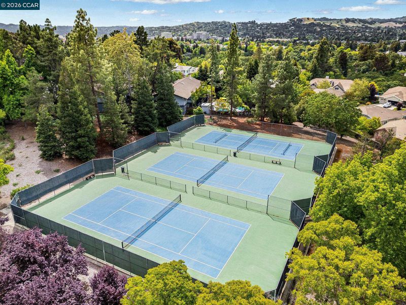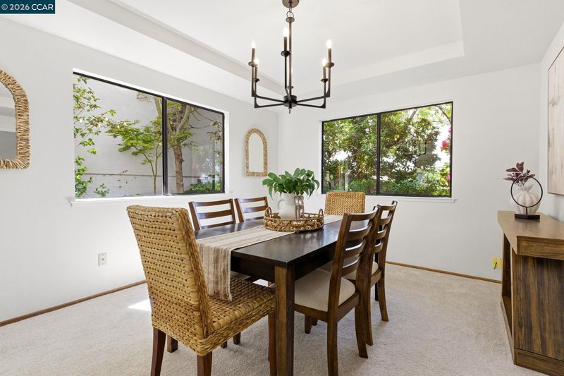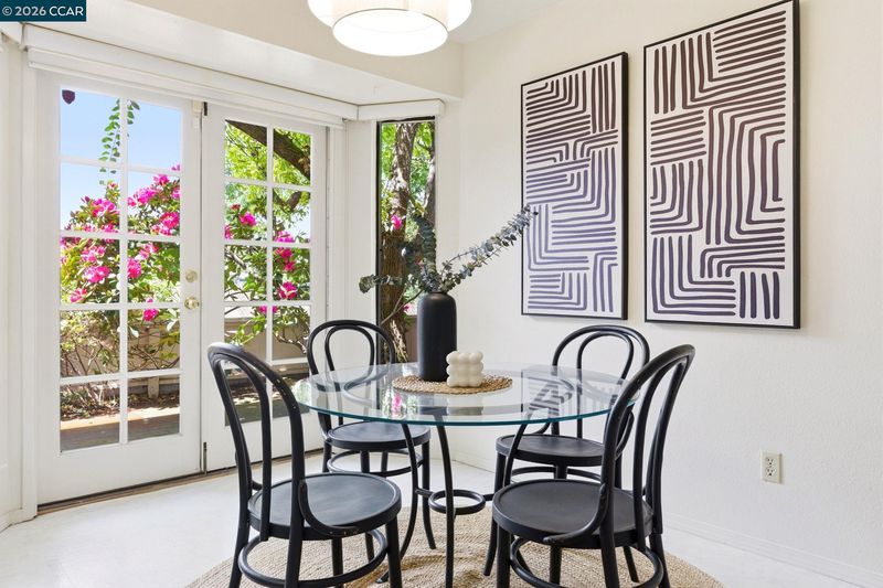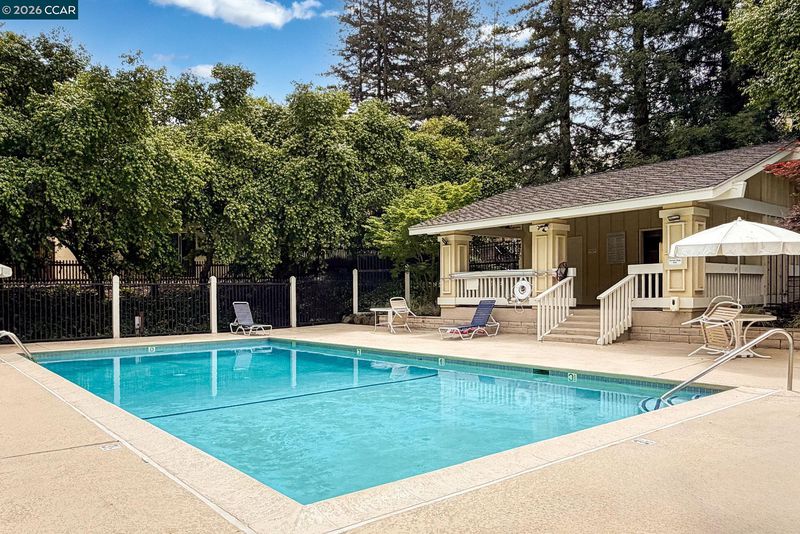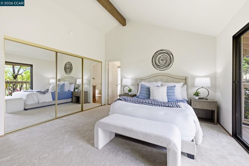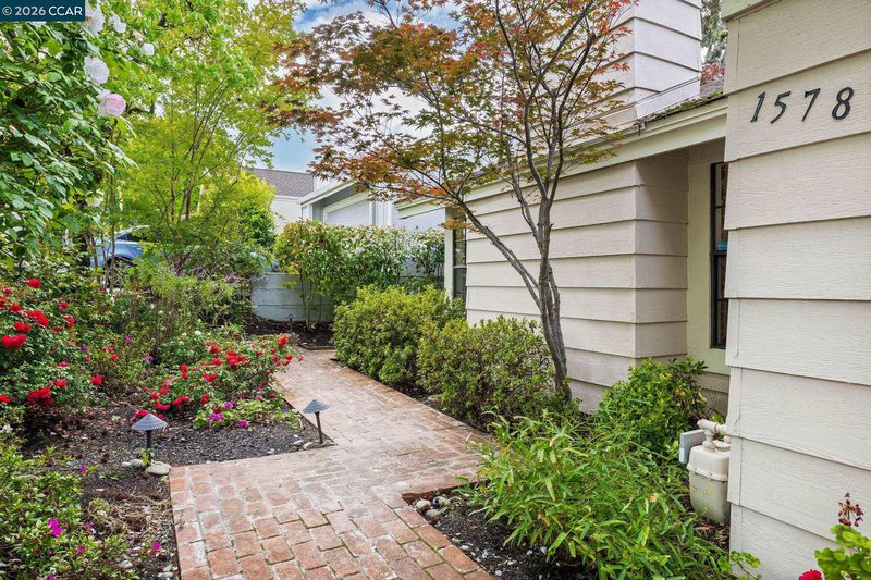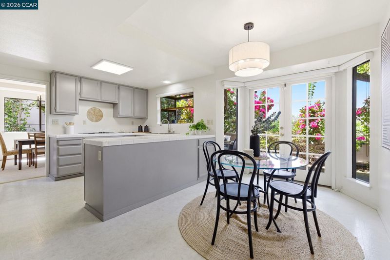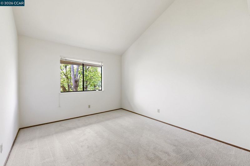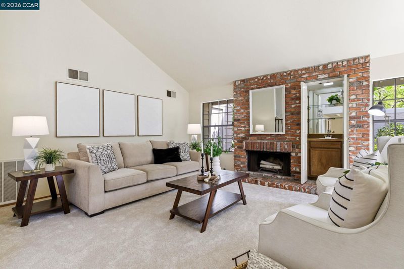 Light-filled living in Heather Farm with vaulted ceilings, a flexible layout & a full bedroom & bathroom on the main level, offering rare versatility for guests, workspace or extended living. Expansive windows & a dramatic ceiling line define the main living area, where a brick fireplace anchors the space & adds warmth and character. The living room flows into a formal dining area framed by greenery, creating a bright, connected setting with distinct spaces for everyday use & entertaining. At the center of the home, the kitchen features tile countertops, extensive cabinetry & a peninsula for prep & casual seating. A separate breakfast nook is surrounded by windows & French doors that open directly to the private patio, bringing in natural light & creating an easy indoor outdoor connection. Upstairs, the primary suite is expansive with vaulted ceilings, its own fireplace & direct access to a private balcony set among mature trees. The ensuite bath includes dual sinks, a large vanity, soaking tub & separate shower, offering both space & functionality. A third bedroom & additional ensuite bath complete the upper level. The private patio is surrounded by lush landscaping, flowering plants & mature trees, creating a secluded outdoor setting with brick hardscape for dining, lounging or relaxing. Heather Farm HOA offers access to three pools, tennis courts & a clubhouse. Located near Heather Farm Park with trails, open space & recreation, and just minutes to shopping & dining, the location supports an easy daily routine. Convenient access to BART & major commute routes including 680 & 24 adds flexibility for Bay Area travel. Served by highly regarded Bancroft Elementary, Foothill Middle & Northgate High.