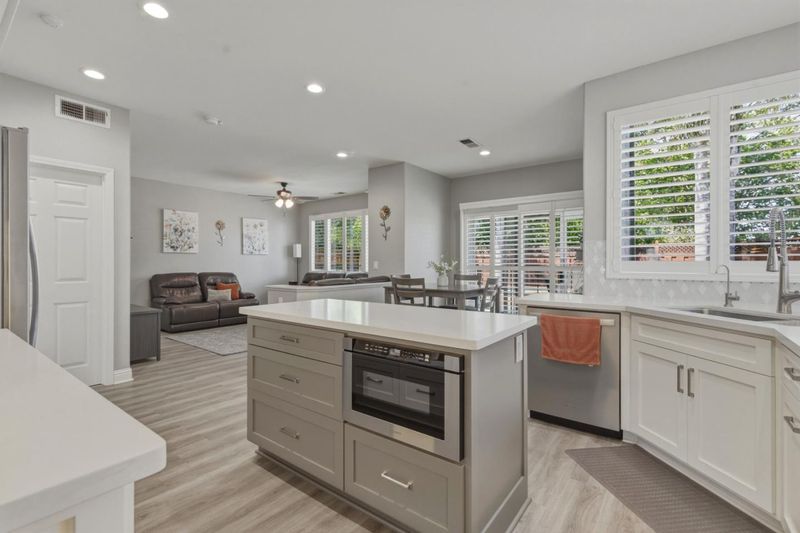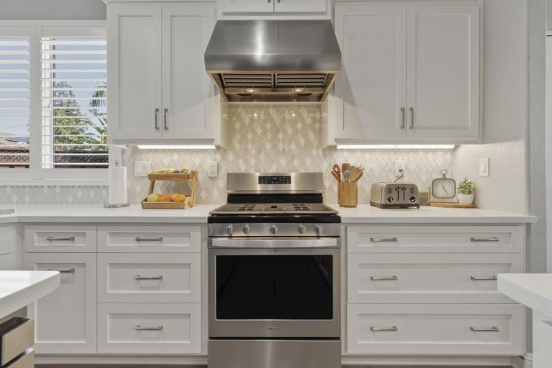 Countertop - Quartz, Garbage Disposal, Hood Over Range, Island, Microwave, Oven Range