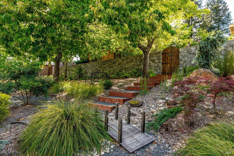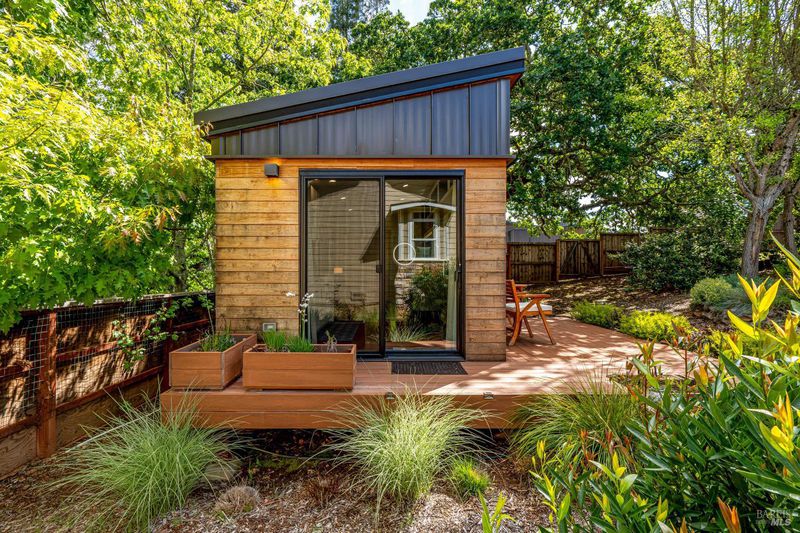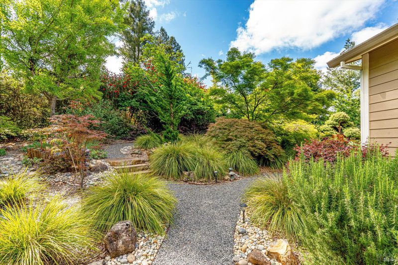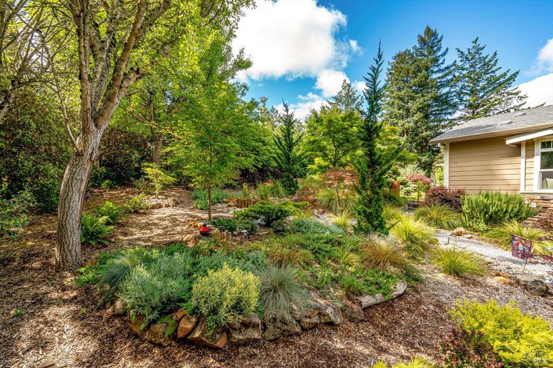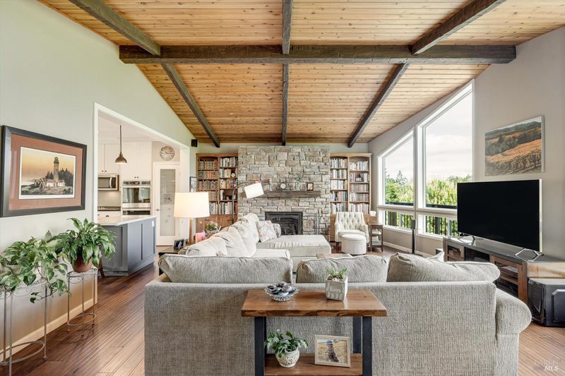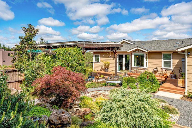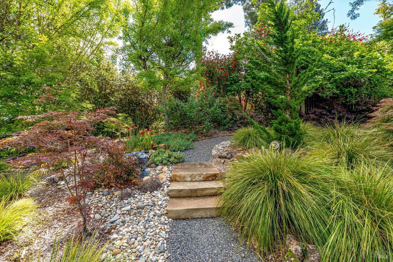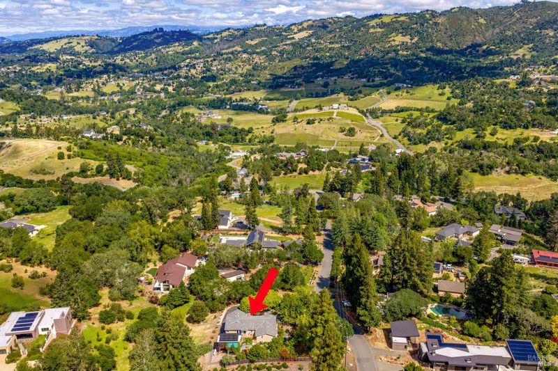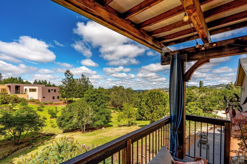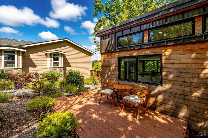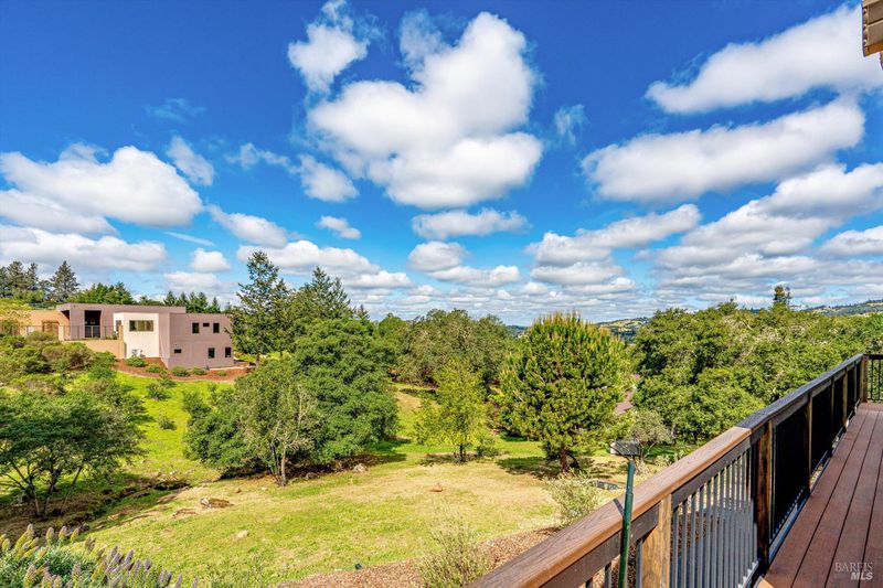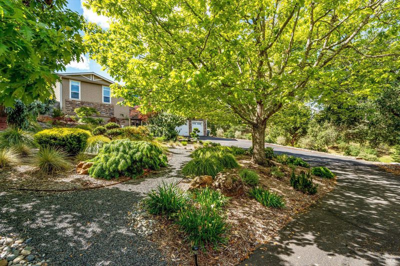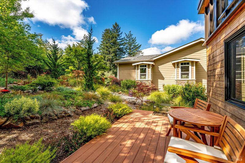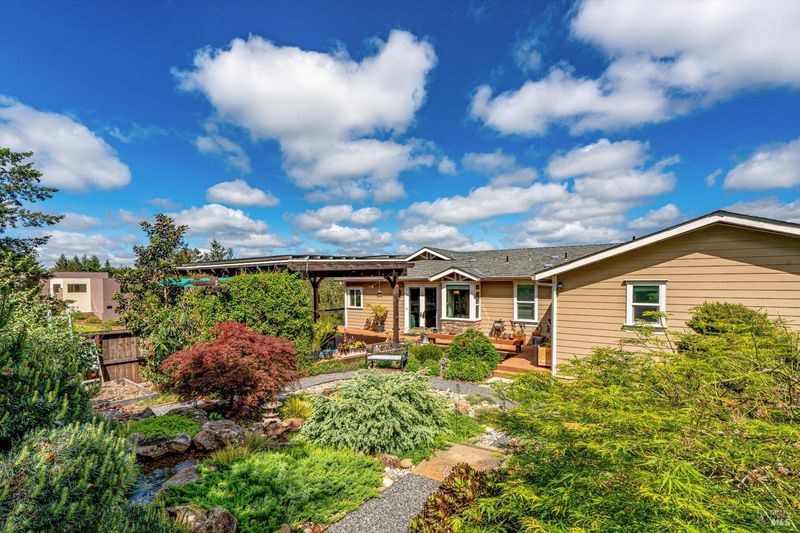 Set on nearly an acre in sought-after Riebli Valley, this thoughtfully designed, recently built home and detached ADU offer privacy, flexibility, and scenic surroundings just minutes from everyday conveniences and Highway 101. Tucked along a tranquil, no-through lane in the Hidden Hills neighborhood, the property combines a peaceful ambiance with convenient access to Santa Rosa, medical services, and the airport. An impressive great room features cathedral ceilings, exposed beams, built-in bookshelves, and a floor-to-ceiling stone fireplace, creating a comfortable gathering space. A wall of windows frames hill views and fills the interior with natural light. The kitchen and dining area are designed for both everyday living and entertaining, offering a large island, quartz countertops, gas cooktop, pantry, wine refrigerator, and built-in desk. French doors open to expansive decking, including a covered outdoor living area well-suited for relaxing or hosting while enjoying the surrounding landscape. The primary suite includes window seats, a spacious walk-in closet, dual vanities, and a walk-in shower, while secondary bedrooms provide flexibility for guests or an office. The charming ADU includes a kitchenette, full bath, queen-size Murphy bed, and a private deck, offering options for guests, extended stays, workspace, or rental potential. The approximate square footage includes the main home and the ADU combined. Additional highlights include solid hickory flooring, tall ceilings and doors, owned solar, a Kohler standby generator, heat pump HVAC system, on-demand water heater, fire-resistant construction features, and an oversized garage with space for storage, hobbies, or workshop use. The grounds feature professionally designed landscaping with mature trees, irrigation, walking paths, a waterfall and creek, and space for gardening or an orchard. This very special property presents a rare opportunity to enjoy space, views, and modern amenities in one of Santa Rosa's most desirable country settings.
