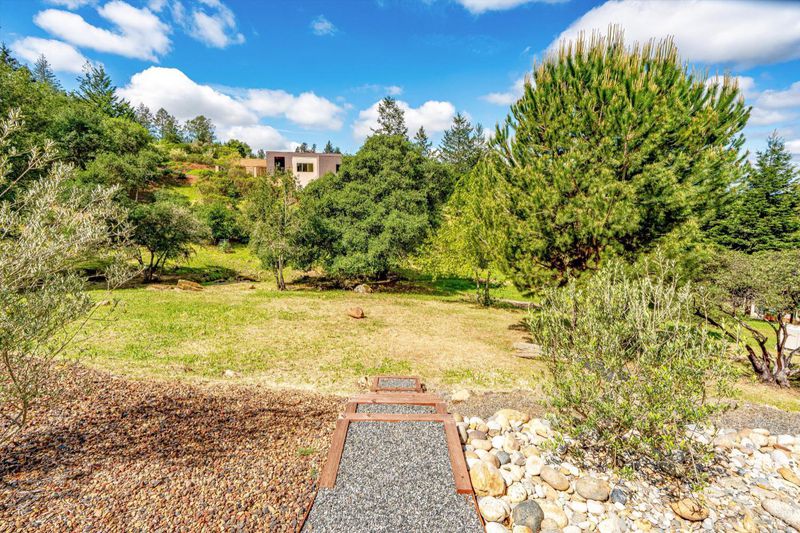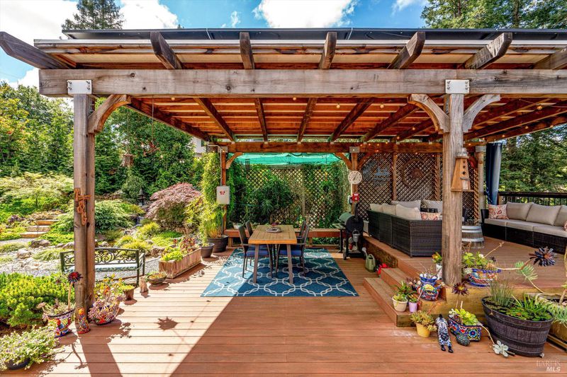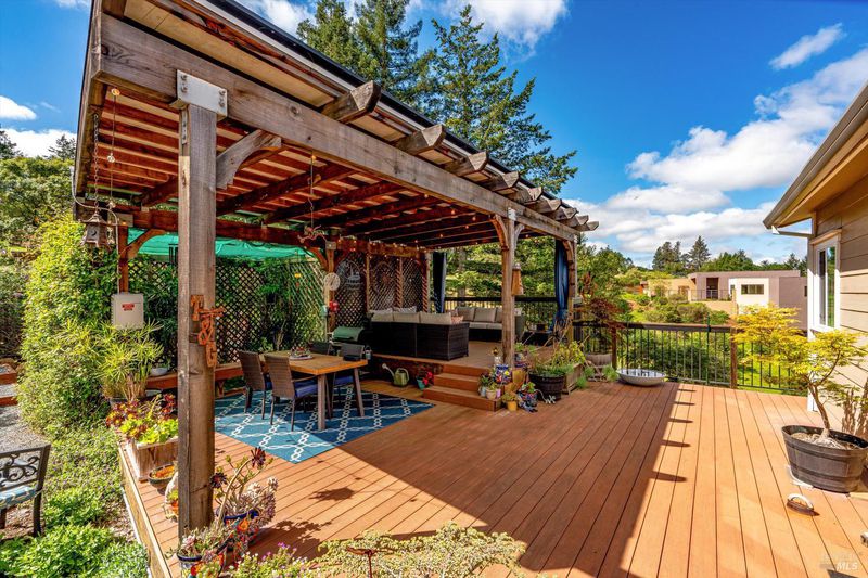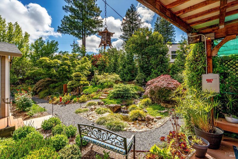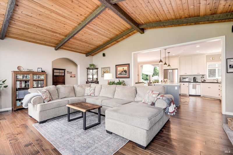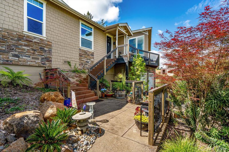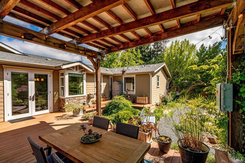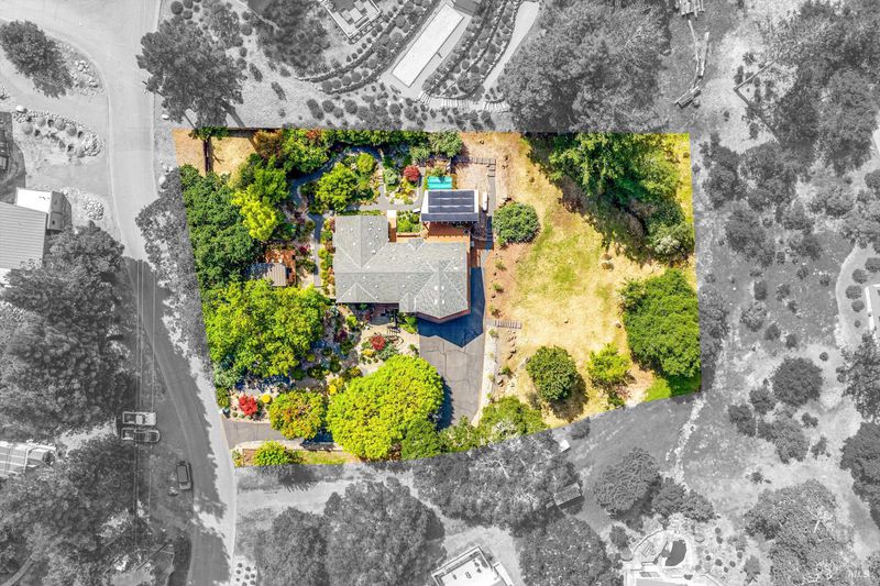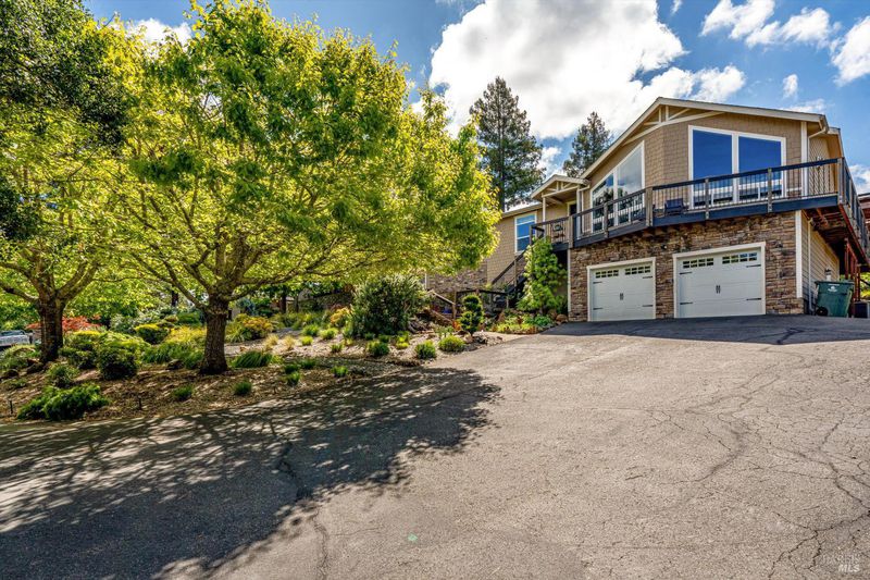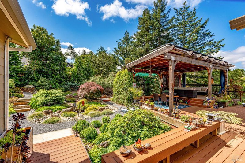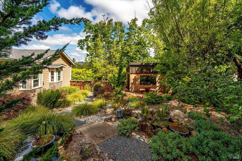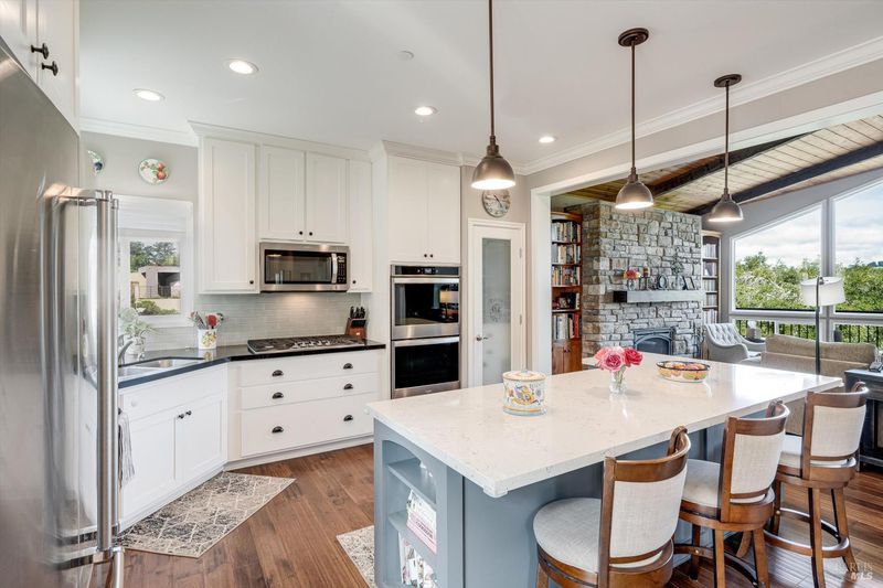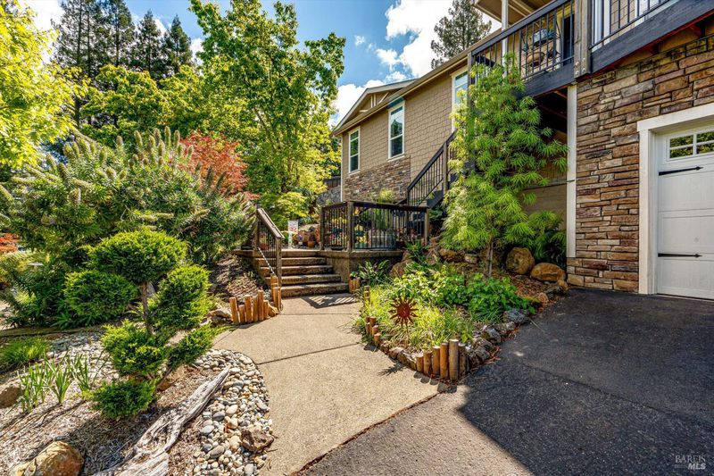 Set on nearly an acre in sought-after Riebli Valley, this thoughtfully designed, recently built home and detached ADU offer privacy, flexibility, and scenic surroundings just minutes from everyday conveniences and Highway 101. Tucked along a tranquil, no-through lane in the Hidden Hills neighborhood, the property combines a peaceful ambiance with convenient access to Santa Rosa, medical services, and the airport. An impressive great room features cathedral ceilings, exposed beams, built-in bookshelves, and a floor-to-ceiling stone fireplace, creating a comfortable gathering space. A wall of windows frames hill views and fills the interior with natural light. The kitchen and dining area are designed for both everyday living and entertaining, offering a large island, quartz countertops, gas cooktop, pantry, wine refrigerator, and built-in desk. French doors open to expansive decking, including a covered outdoor living area well-suited for relaxing or hosting while enjoying the surrounding landscape. The primary suite includes window seats, a spacious walk-in closet, dual vanities, and a walk-in shower, while secondary bedrooms provide flexibility for guests or an office. The charming ADU includes a kitchenette, full bath, queen-size Murphy bed, and a private deck, offering options for guests, extended stays, workspace, or rental potential. The approximate square footage includes the main home and the ADU combined. Additional highlights include solid hickory flooring, tall ceilings and doors, owned solar, a Kohler standby generator, heat pump HVAC system, on-demand water heater, fire-resistant construction features, and an oversized garage with space for storage, hobbies, or workshop use. The grounds feature professionally designed landscaping with mature trees, irrigation, walking paths, a waterfall and creek, and space for gardening or an orchard. This very special property presents a rare opportunity to enjoy space, views, and modern amenities in one of Santa Rosa's most desirable country settings.