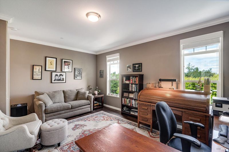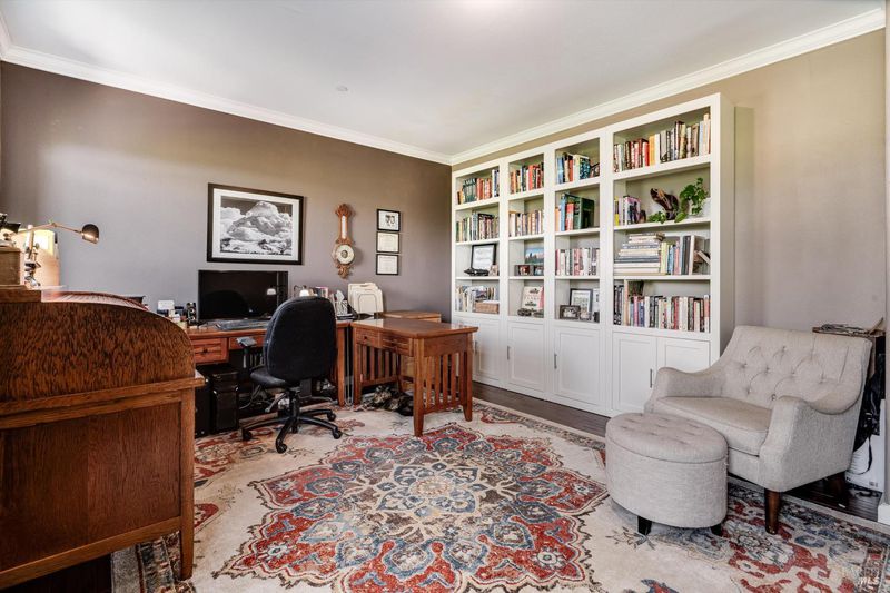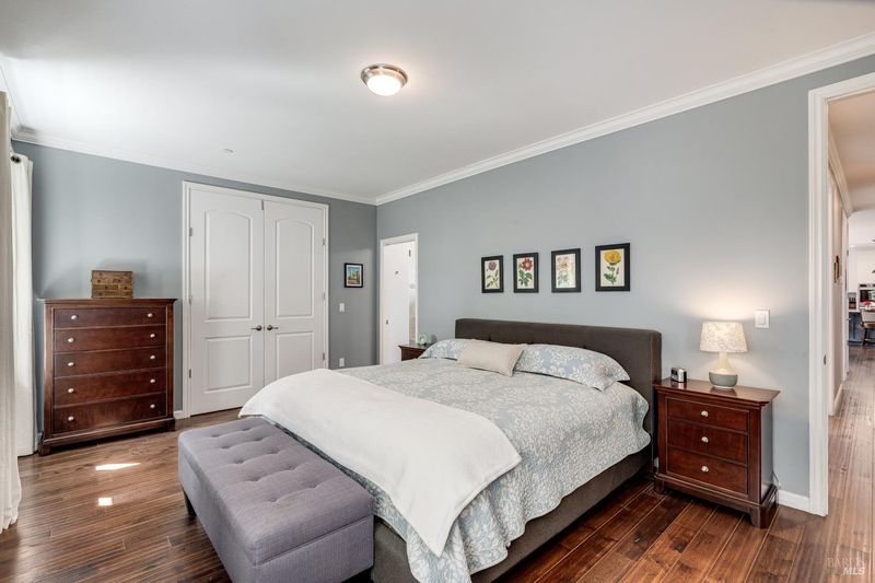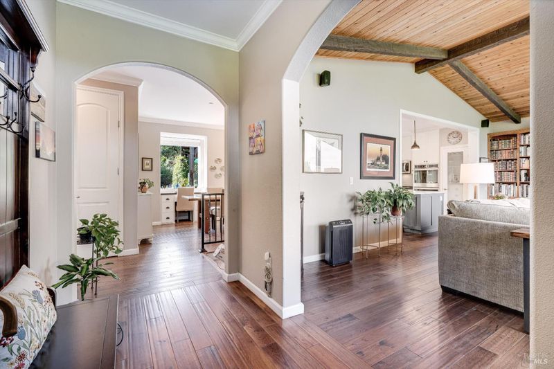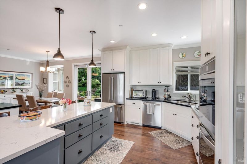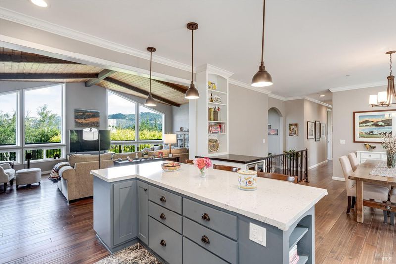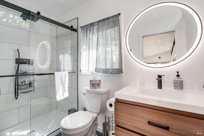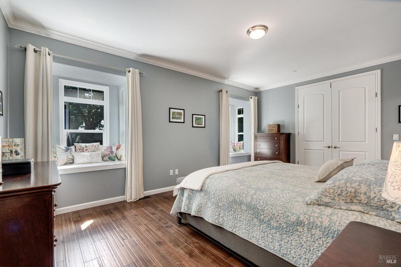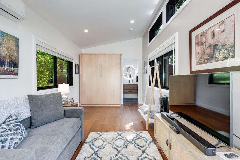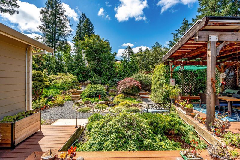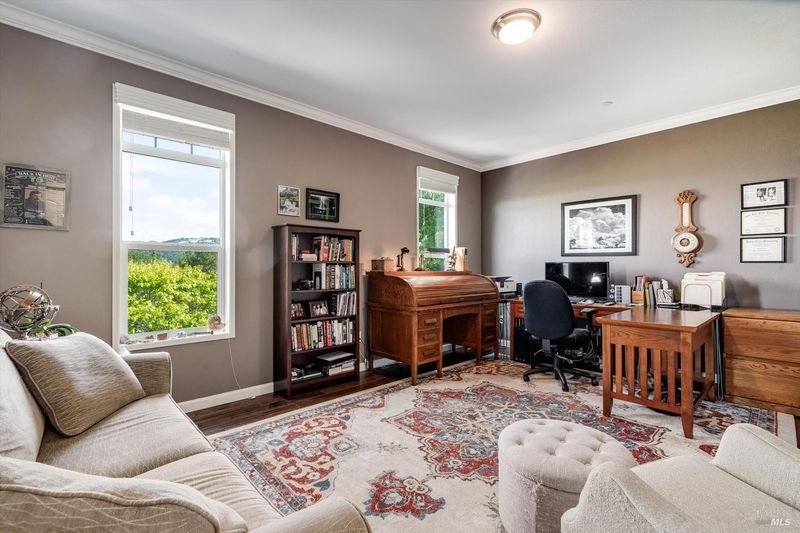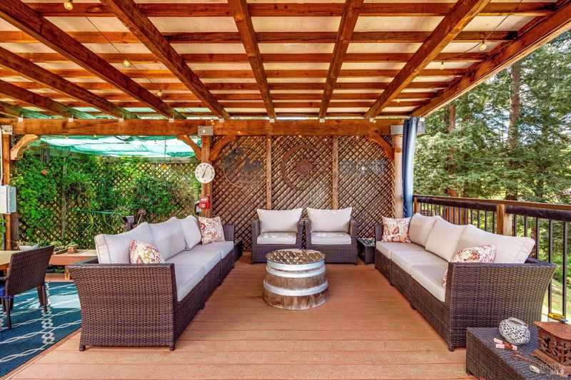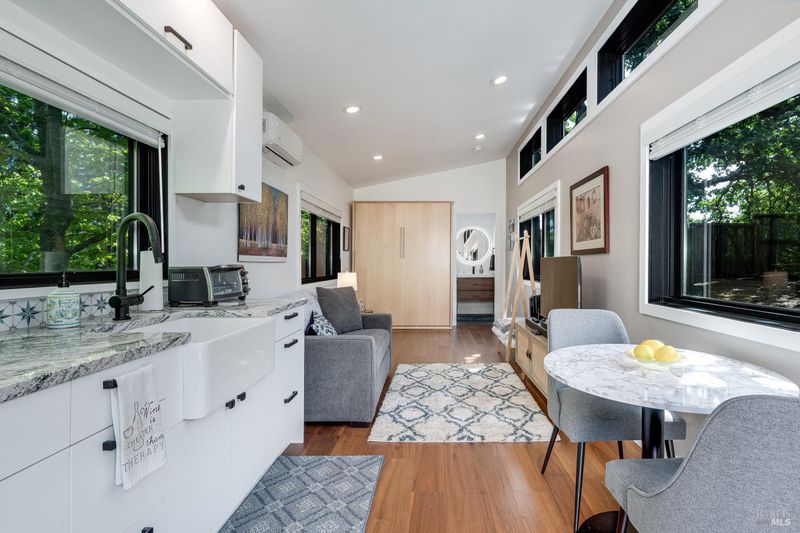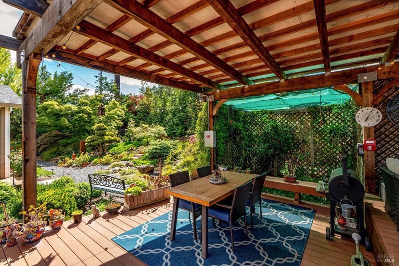 Set on nearly an acre in sought-after Riebli Valley, this thoughtfully designed, recently built home and detached ADU offer privacy, flexibility, and scenic surroundings just minutes from everyday conveniences and Highway 101. Tucked along a tranquil, no-through lane in the Hidden Hills neighborhood, the property combines a peaceful ambiance with convenient access to Santa Rosa, medical services, and the airport. An impressive great room features cathedral ceilings, exposed beams, built-in bookshelves, and a floor-to-ceiling stone fireplace, creating a comfortable gathering space. A wall of windows frames hill views and fills the interior with natural light. The kitchen and dining area are designed for both everyday living and entertaining, offering a large island, quartz countertops, gas cooktop, pantry, wine refrigerator, and built-in desk. French doors open to expansive decking, including a covered outdoor living area well-suited for relaxing or hosting while enjoying the surrounding landscape. The primary suite includes window seats, a spacious walk-in closet, dual vanities, and a walk-in shower, while secondary bedrooms provide flexibility for guests or an office. The charming ADU includes a kitchenette, full bath, queen-size Murphy bed, and a private deck, offering options for guests, extended stays, workspace, or rental potential. The approximate square footage includes the main home and the ADU combined. Additional highlights include solid hickory flooring, tall ceilings and doors, owned solar, a Kohler standby generator, heat pump HVAC system, on-demand water heater, fire-resistant construction features, and an oversized garage with space for storage, hobbies, or workshop use. The grounds feature professionally designed landscaping with mature trees, irrigation, walking paths, a waterfall and creek, and space for gardening or an orchard. This very special property presents a rare opportunity to enjoy space, views, and modern amenities in one of Santa Rosa's most desirable country settings.
