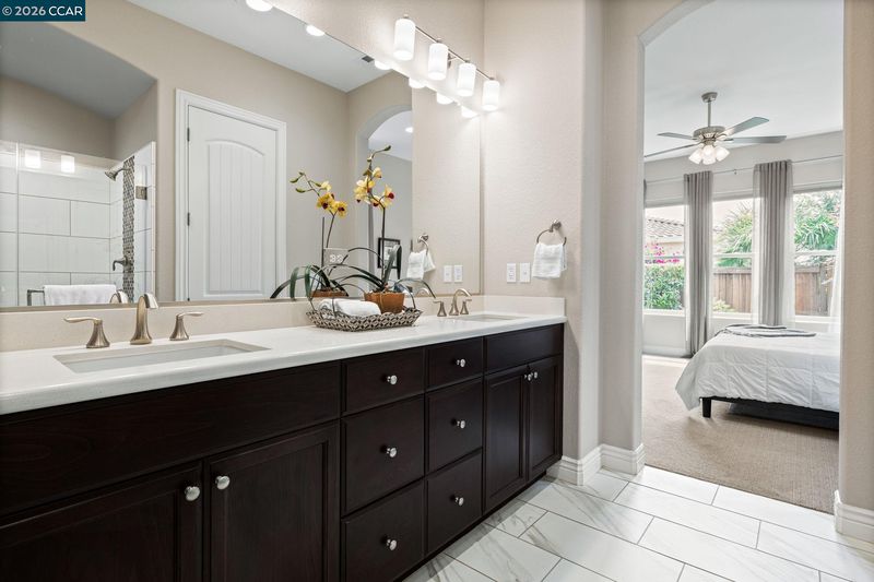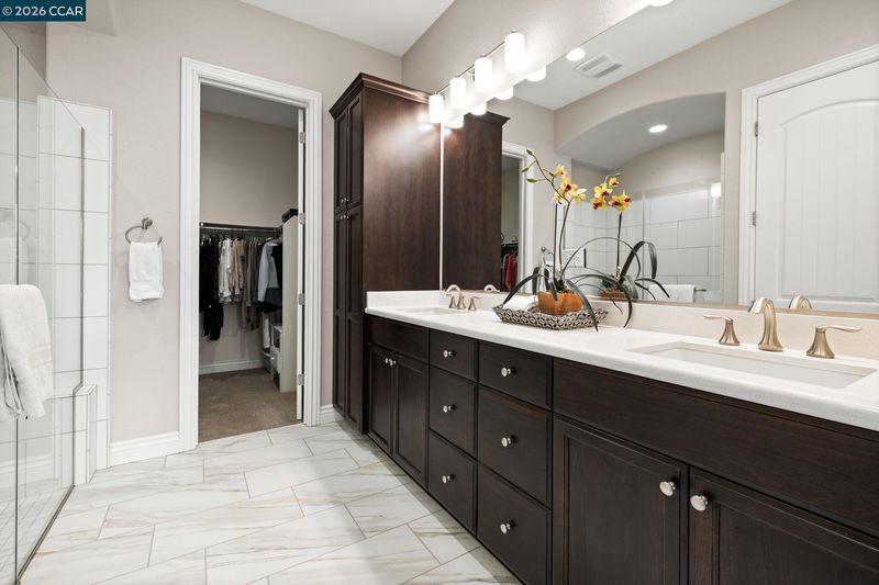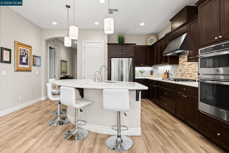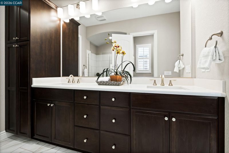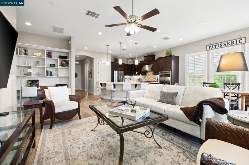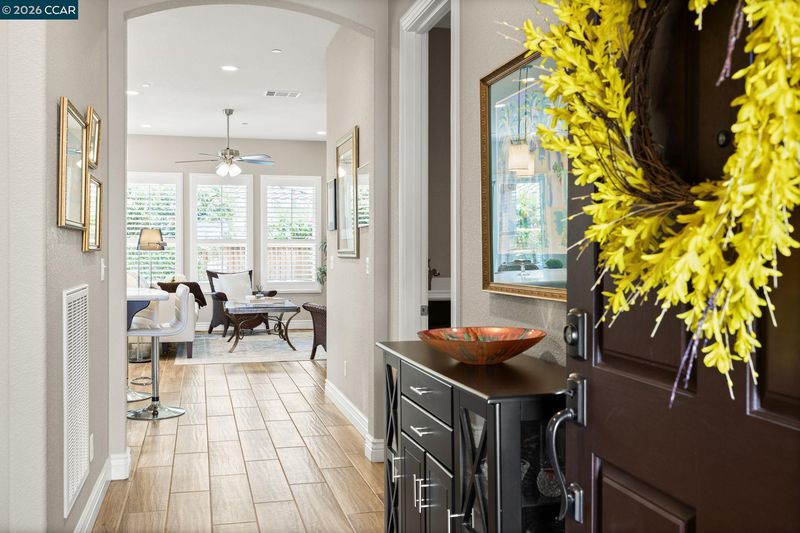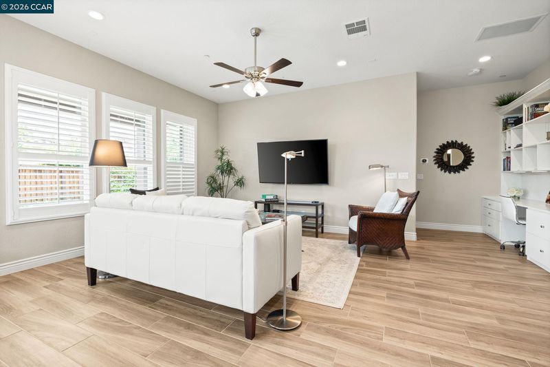 113 characters left. Absolutely gorgeous home. This beautiful single-story home combines modern elements with classic design and is located in the hills of Trilogy at The Vineyards. The home offers an open-concept layout with natural light, high ceilings, wood-style tile, custom window covering, shutters, and a wonderful outdoor space. The Chef’s kitchen has a large center island with top-of-the-line appliances, shaker cabinets, high-end Quartz counters, a custom tile backsplash, abundant cabinetry, and a pantry. This home has a fantastic living space and an office area with custom built-ins by California Closets. It features a wonderful primary suite with a large bathroom and dual sink vanity, a custom shower, and a large walk-in closet. The spacious second bedroom is adjacent to a full bathroom. With over $140K in upgrades, this home is a true standout. Located within the exclusive Trilogy 55+ gated resort community