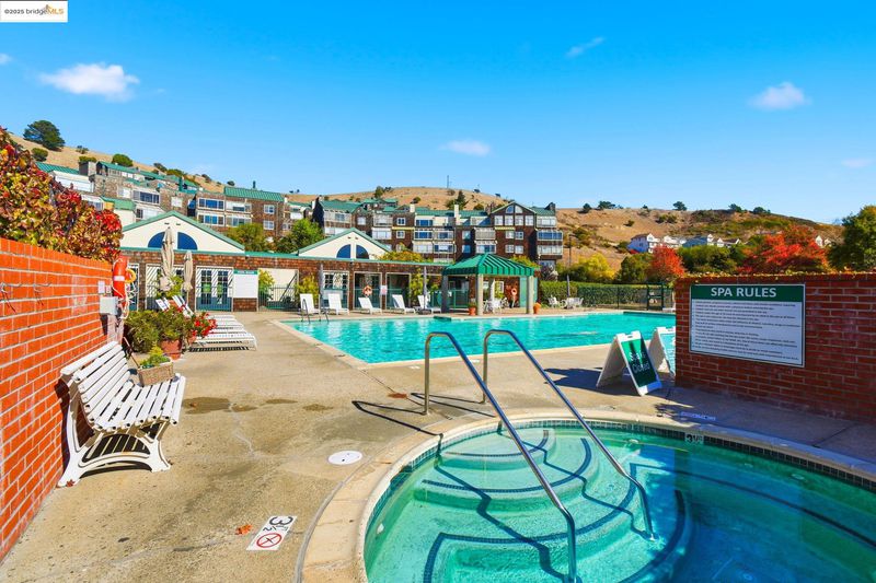 Incredible views from this spacious, 914 sqft 1 bedroom unit located in quiet Brickyard Cove. From the living room and bedroom windows you have views spanning Oakland to Marin with straight on views of SF, Angel Island and the bay. Freshly painted and all new carpet this unit is move in ready. Unit has W/D and level entry. The amenities are endless: 2 car gated garage, one space with storage, year round heated pool with spa and sauna, full gym, tennis/pickle-ball courts, a club house, a community garden and EV charging stations. Situated along the Bay Trail and surrounded by Park and hills, there is no limit to walking, hiking and biking activities. Richmond Yacht Club, Miller Knox park and beach are just around the corner. The quaint town of Pt Richmond has grocery, post office, comm. playhouse, many restaurants and salons. Even a Natatorium and Mechanic's Bank. Minutes to Marin and Berkeley, HWY 580, BART, Bridges and Richmond Ferry to SF. Perfect for first time buyers, a second home, or downsizing.