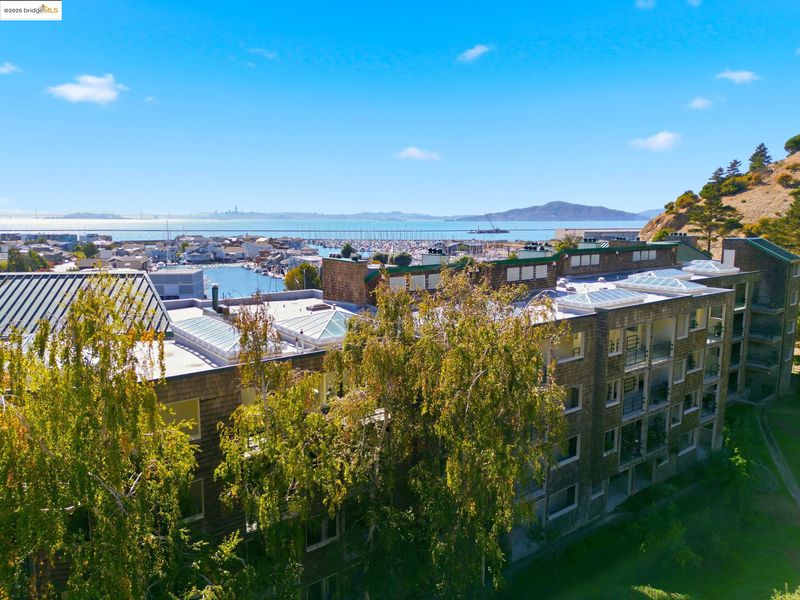 Incredible views from this spacious, 914 sqft 1 bedroom unit located in quiet Brickyard Cove. From the living room and bedroom windows you have views spanning Oakland to Marin with straight on views of SF, Angel Island and the bay. Freshly painted and all new carpet this unit is move in ready. Unit has W/D and level entry. The amenities are endless: 2 car gated garage, one space with storage, year round heated pool with spa and sauna, full gym, tennis/pickle-ball courts, a club house, a community garden and EV charging stations. Situated along the Bay Trail and surrounded by Park and hills, there is no limit to walking, hiking and biking activities. Richmond Yacht Club, Miller Knox park and beach are just around the corner. The quaint town of Pt Richmond has grocery, post office, comm. playhouse, many restaurants and salons. Even a Natatorium and Mechanic's Bank. Minutes to Marin and Berkeley, HWY 580, BART, Bridges and Richmond Ferry to SF. Perfect for first time buyers, a second home, or those who are downsizing.