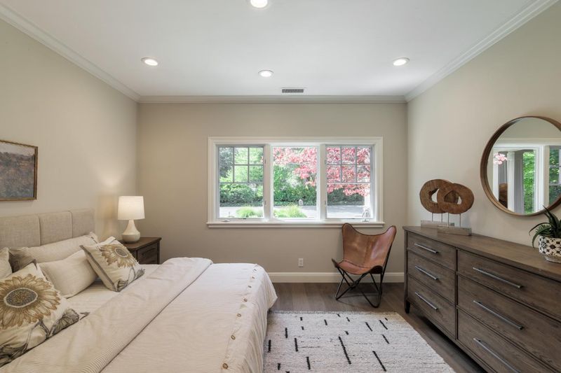 This beautiful Craftsman-inspired home offers elegant interiors, flexible floor plan and exceptional indoor-outdoor living on a large lot. Extensively expanded and remodeled in 2003, the home blends timeless architectural character with modern comfort and quality craftsmanship. This superb location is close to schools, parks, shops, restaurants, services, downtown Palo Alto, Burgess Rec Center, commute routes and top Silicon Valley employers. Entertaining is made easy in the formal living room, dining room and family room/kitchen featuring a large island with breakfast bar & prep sink, casual dining area, granite counters, stainless steel appliances all open to a family room with vaulted ceilings, and bi-fold doors to the back deck/garden. The back garden features multilevel heated sitting areas, large gas fire pit, corten steel planters and well-appointed outdoor kitchen. The thoughtfully designed floor plan features 4 bedrooms and 2 bathrooms on the main level, including a spacious ground-level primary suite with a luxurious en-suite bath, French doors to the back garden and two walk-in closets. The lower level features a large family room, 5th bedroom, 3rd bathroom, laundry room, temperature controlled wine cellar and extra bonus storage area. Top rated Menlo Park schools.