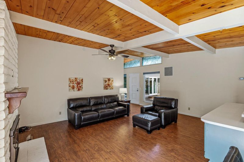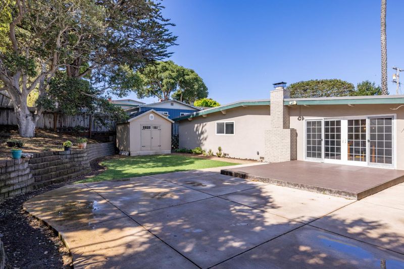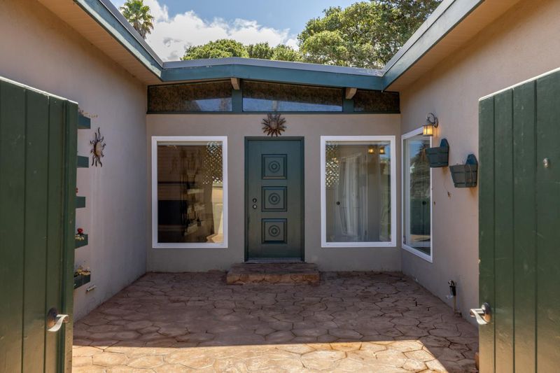 Meet this 1960s modern-inspired charmer that awaits its new owner. Welcoming you with an enclosed courtyard entry and featuring 3 bedrooms, 2 bathrooms and approximately 1,395 sq ft. The home offers light and bright space, open floor plan, lovely open beam ceilings, a cozy wood-burning fireplace in the living room and a bright kitchen with breakfast bar that looks out to the backyard through the sliding French doors. Through those doors you will be greeted by a tiered backyard with mature landscaping, creating a private outdoor setting that one can only dream of. With its two-car attached garage proximity to coastal recreation, including nearby beaches, dunes, and outdoor trails, there is not much that is missing here at Marina delight.