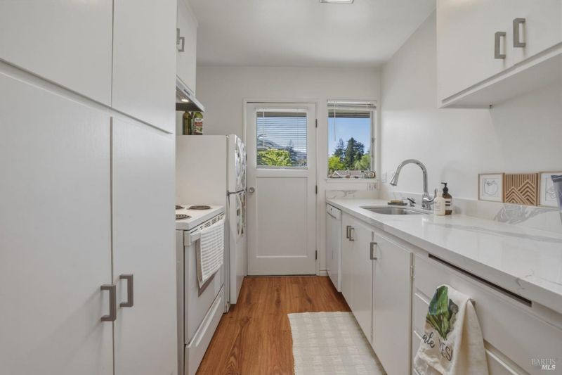 Welcome to this top floor end-unit 1BD/1BA condominium residence in desirable West Corte Madera. There is only one shared wall and no unit below. Relish impressive Mt. Tamalpais views and sunsets from the bedroom, kitchen and sizeable rear deck. This inviting condo features a well-appointed kitchen with quartz countertops, a Bosch dishwasher, Pergo floors throughout, an operable skylight, a newer wall heater, foam insulation and bathroom updates. Residents in this small complex enjoy a peaceful setting with access to a community pool, covered parking with storage and on-site laundry. Ideally located directly across from Town Park which offers a multitude of recreational amenities including pickleball/tennis/basketball courts, an expansive playground, a shaded picnic area, playing fields and a fenced-in dog area. The condo is exceptionally convenient to Downtown Larkspur, the Town Center Mall, the community center, Old Corte Madera square/gazebo, paths to the Corte Madera creek and near an amazing hiking trail network. If academic programs are important, the property resides in a highly acclaimed school district. Proximate to Hwy. 101 for an easy commute. The HOA fee includes common areas, insurance on structure, maintenance exterior/grounds, pool, roof, garbage and water.