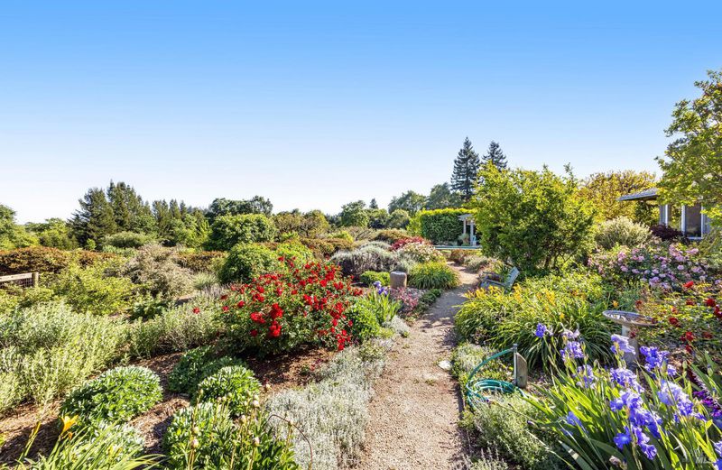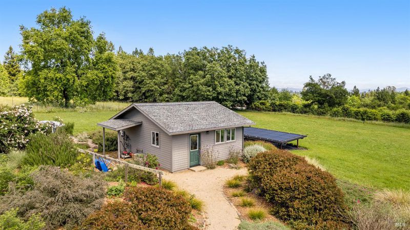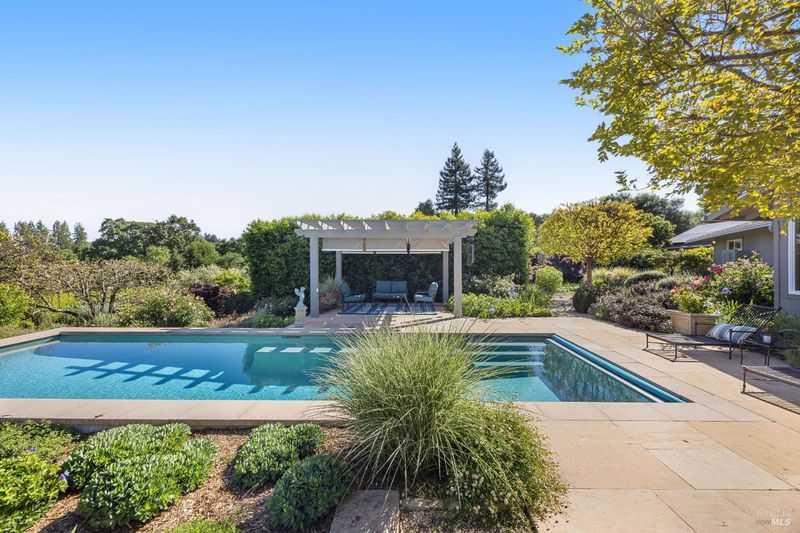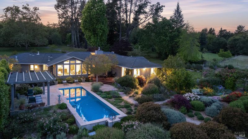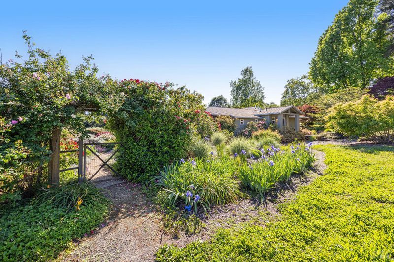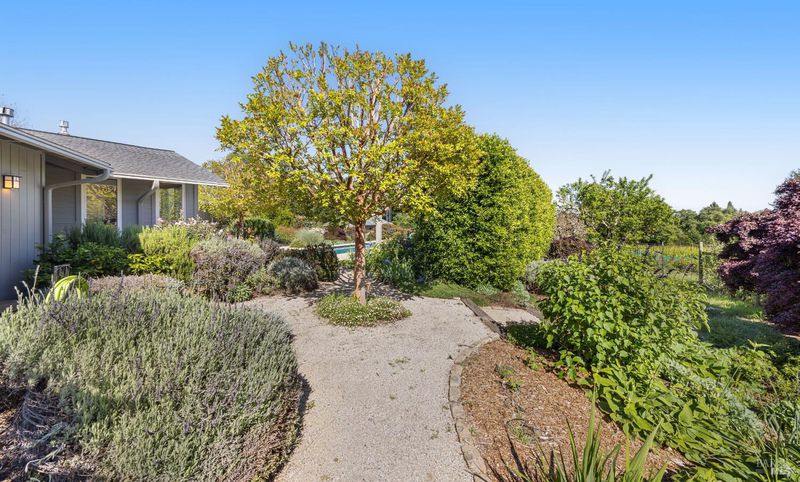 On a serene 2.38-acre parcel in the gorgeous Sebastopol countryside rests this beautiful home embraced by a magnificent garden with stunning views. There's beauty all around - every window looks out at loveliness! The garden was born of a desire to create an outdoor space permeated with peace, beauty and harmony and was designed and built by noted Sonoma County landscape architect Steve White. Add a pool and a deck made of Ipe, a Brazilian hardwood, and the result is an oasis with both aesthetic appeal and opportunity for entertaining. The home features a great room concept and a kitchen with granite counters and a 5-burner stove with downdraft range hood. An inviting library separates the primary and 2nd bedroom. Then there is an office and a large 3rd bedroom that could be used as a studio or hobby room. This sunny and completely usable lot has a large circular driveway and additional open space for anything you want to create or grow. An oversized 2-car detached garage and a 480 sqft shop offers additional space for anything you desire. This gardener's haven also boasts a separate vegetable garden with large raised beds and a 2nd well with storage tank for irrigation. To top it off, the owned solar system with battery backup and EV charging station falls under the advantageous NEM2 program. Located on a quiet private lane in the desirable West-County Banana Belt, this home offers serenity while being just 5 minutes from shopping and dining in the charming town of Graton.