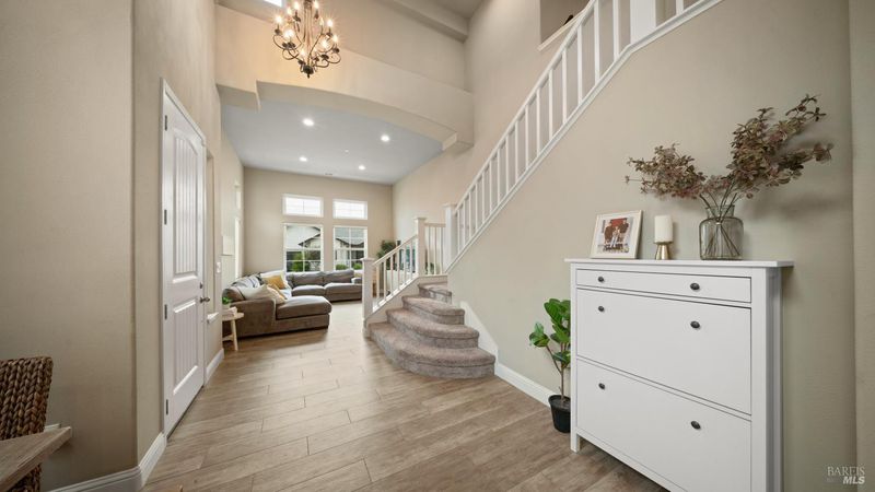 Tucked away in one of Fountaingrove's most coveted and hidden enclaves, this Miramonte residence offers the perfect blend of privacy, convenience, and modern design. Set on a rare level, manicured lot in a peaceful hillside setting, this home feels like a true retreat while remaining close to everything Santa Rosa has to offer. Built in 2020 and practically brand new, this 4-bedroom, 2.5-bath home spans approximately 2,150 sq ft, with AC, tankless water heater, and features vaulted ceilings, an abundance of natural light, and a highly desirable main-level primary suite. The open floor plan flows effortlessly from room to room, anchored by a stunning new kitchen with quartz countertops, subway tile backsplash, and generous prep and storage space perfect for everyday living and entertaining alike. Step outside to a beautifully landscaped, level backyard with stamped concrete, manicured greenery, and no rear neighbors, creating a serene and private outdoor space ideal for relaxing or hosting guests. Enjoy exceptional proximity to Nagasawa Park, neighborhood walking trails, and the exclusive Fountaingrove Club, offering a resort-style pool, state-of-the-art fitness center, tennis and pickleball courts, and a spectacular 18-hole golf course with a brand-new clubhouse, restaurant, and bar. Paradise Ridge Winery one of Sonoma County's most iconic destinations is just minutes away, offering breathtaking views and unforgettable sunsets. Ideally located near Keysight, Kaiser, and Sutter Medical Center, this home is perfectly suited for medical professionals and commuters alike, with quick highway access and low-maintenance, turnkey living. A rare opportunity to own a nearly new home in one of Santa Rosa's most desirable neighborhoods.