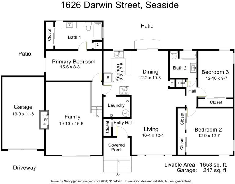 Ocean views from both the living and family rooms immediately set 1626 Darwin St apartbecause in this segment of Seaside, thats not typical. Most homes at this level make you choose between price and perspective. Here, you get both.Inside, the home has been refreshed to create a clean, livable starting point. New luxury vinyl plank flooring runs throughout, paired with fresh interior and exterior paint, updated bathrooms, and new lighting that brings a more modern feel to the space. Its comfortable as-is, while still offering room to improve over time. With 3 bedrooms, 2 full baths, and approximately 1,653 square feet, the layout is both practical and flexible. Multiple living areas give you options, including a separate family room anchored by a fireplaceadding warmth and a natural gathering space that complements the homes more relaxed, everyday flow.The kitchen features stainless steel appliances and connects easily to the main living spaces, making it functional today with the potential to redesign down the line.Set on a spacious lot, theres room to expand, landscape, or reimagine the outdoor environment to match the interior improvements.Located just minutes from Broadway Avenue, youre close to Seasides best restaurants ... while still coming home to ocean views!