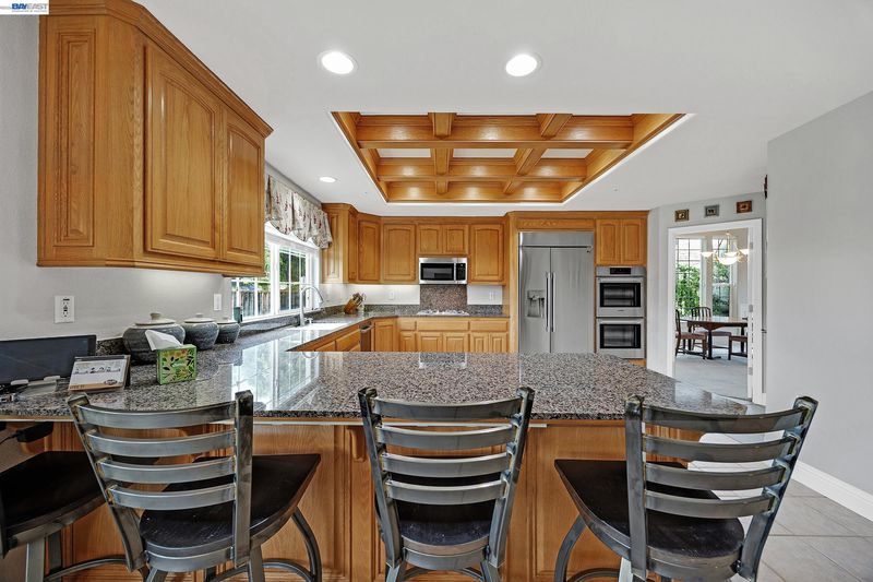 Bright and open floor plan with a downstairs bedroom or office with a full bath in this South Livermore home! The sunny entry leads to the living room and spacious formal dining room with custom wainscoting and soaring ceilings. The kitchen has expansive granite counters and upgraded appliances including stainless steel Bosch ovens and dishwasher, recently replaced stainless built-in refrigerator, walk-in pantry, and sunny breakfast nook. The family room is open to the kitchen and has a raised hearth gas fireplace and crown molding. The kitchen and family room are spacious and perfect for large gatherings. Upstairs are 4 spacious bedrooms including large master bedroom with sitting area, spacious walk-in closet, and bathroom with jetted tub. Lots of storage space in the attic accessed in the garage, and also storage space access on 2nd floor of home. The possibilities are endless for the large back yard, perfect for a future pool, outdoor kitchen and more. Upgrades include new front door, crown molding, custom recessed ceiling in the kitchen, intercom, and central vac. The rear yard has side yard access and loads of privacy. Home is walking distance to churches, Tennis club, and numerous bike and walking paths, wineries and more. Don't miss this rare opportunity to own a custom home located on a court in the heart of South Livermore Valley!